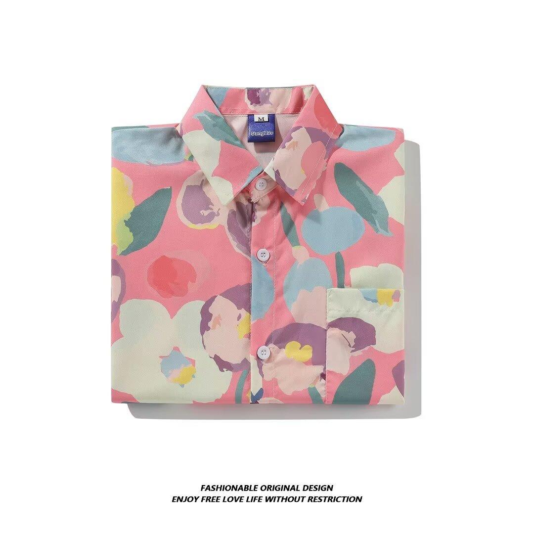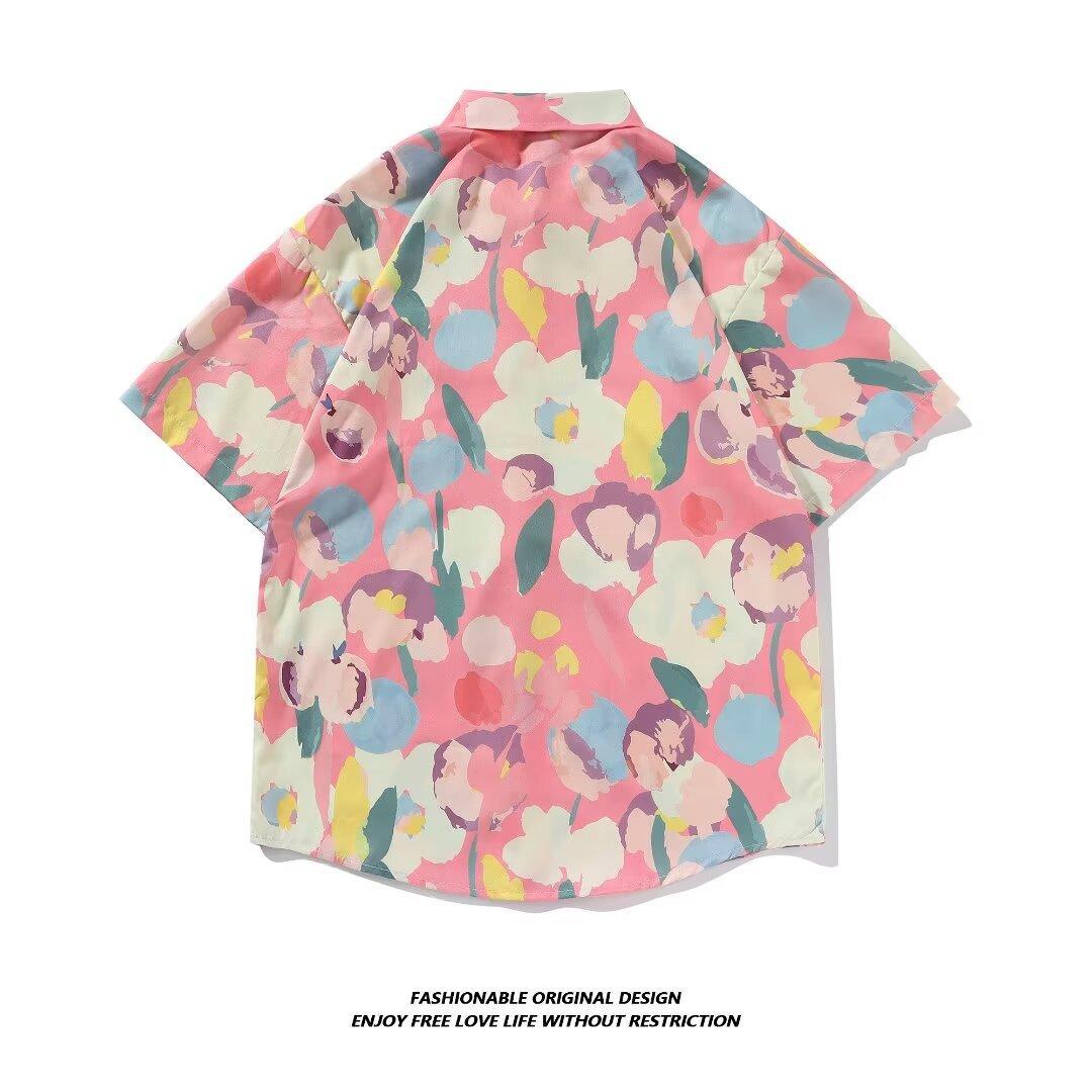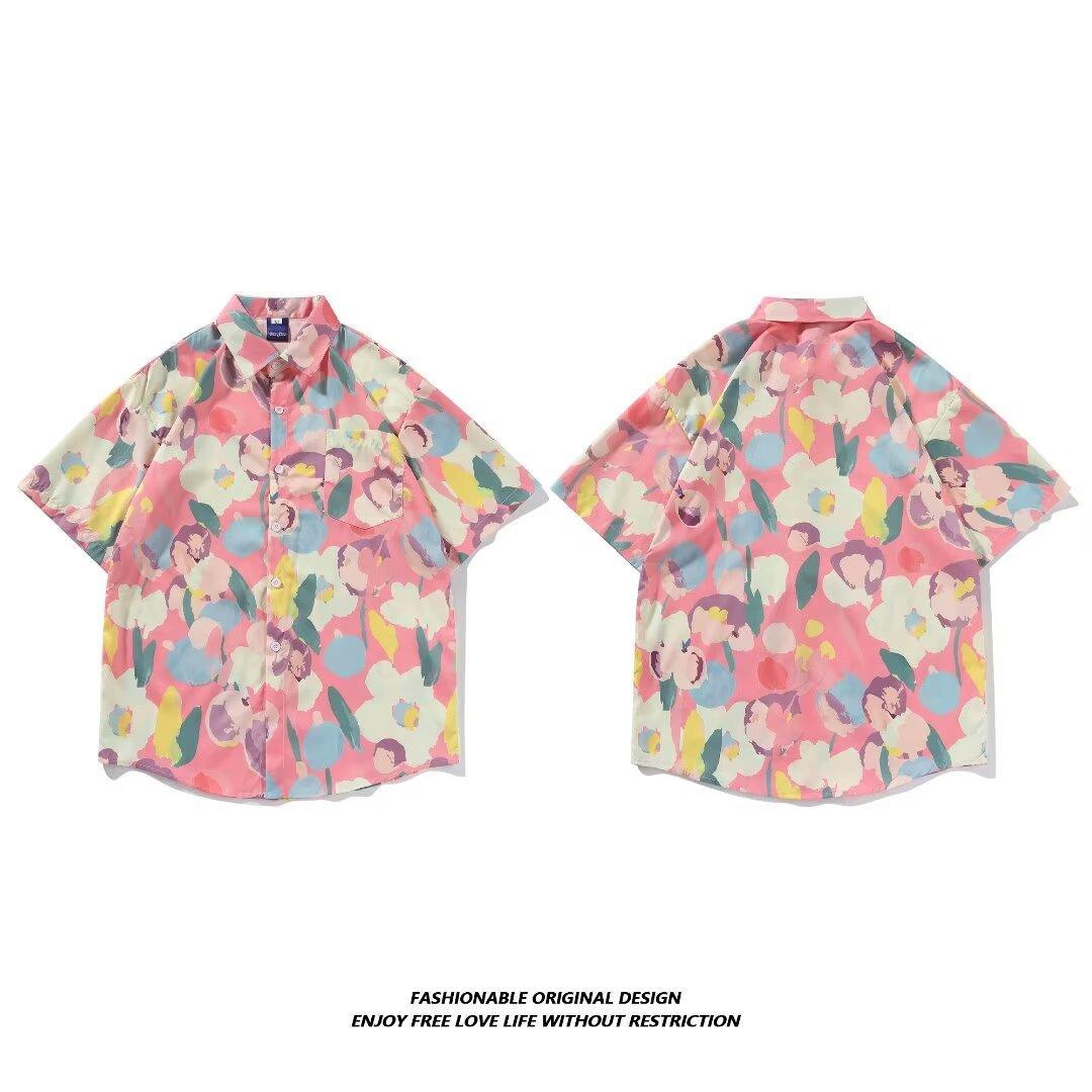 休闲满印花衬衫男短袖夏季新款潮牌ins印花情侣衬衣宽松痞帅上衣