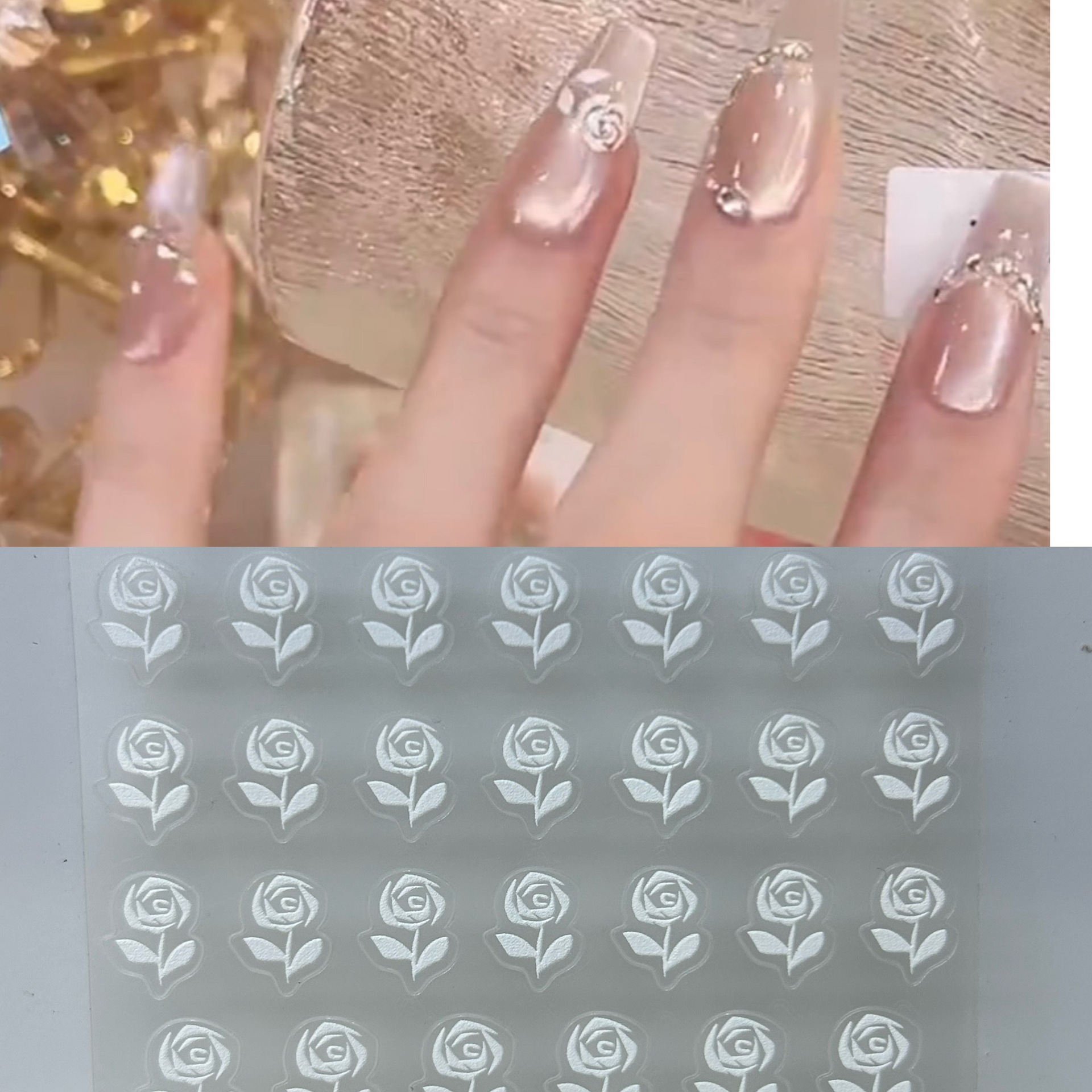 奈姿 新款白玫瑰手工穿戴甲美甲贴纸玫瑰图案可拆卸重复使