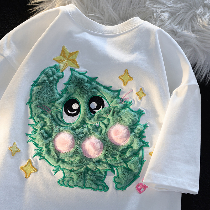 纯棉短袖T恤女夏季美式男女新款宽松怪兽学院情侣刺绣上衣ins潮