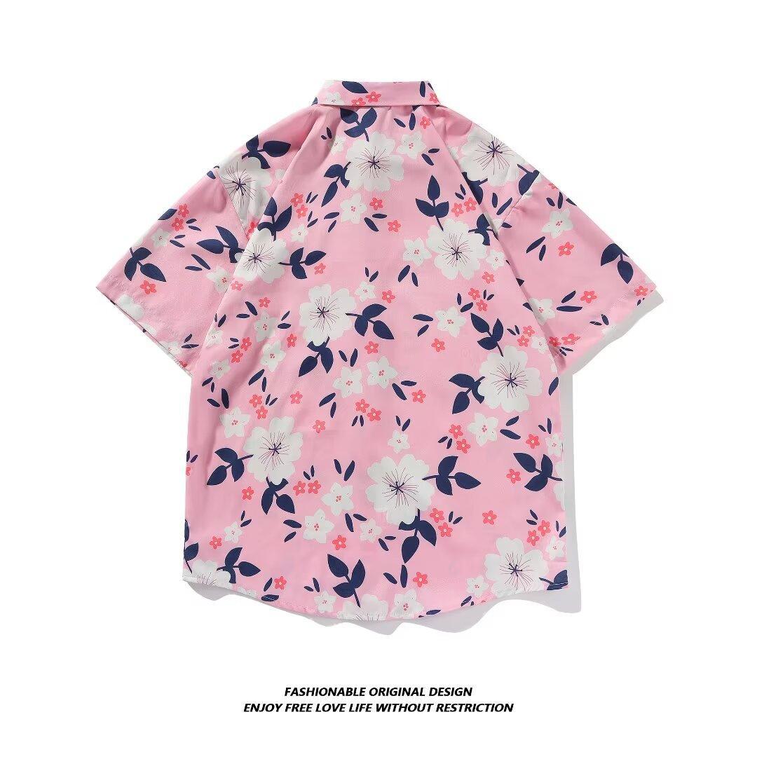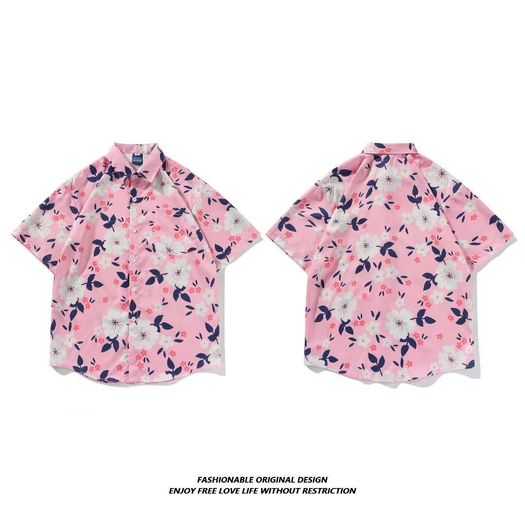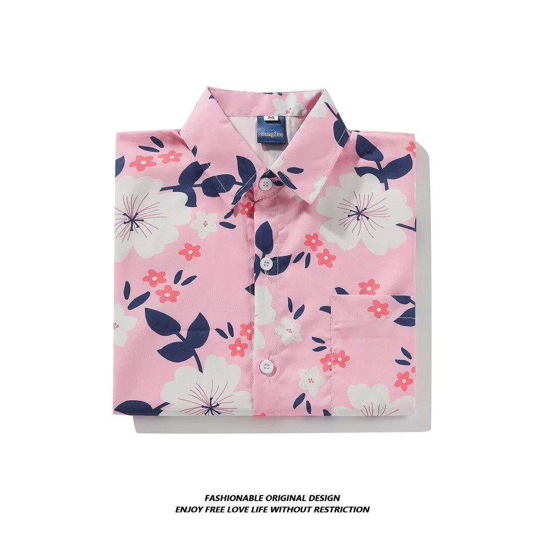 夏季新款满印花衬衫男潮牌ins夏威夷沙滩度假风宽松休闲开衫上衣