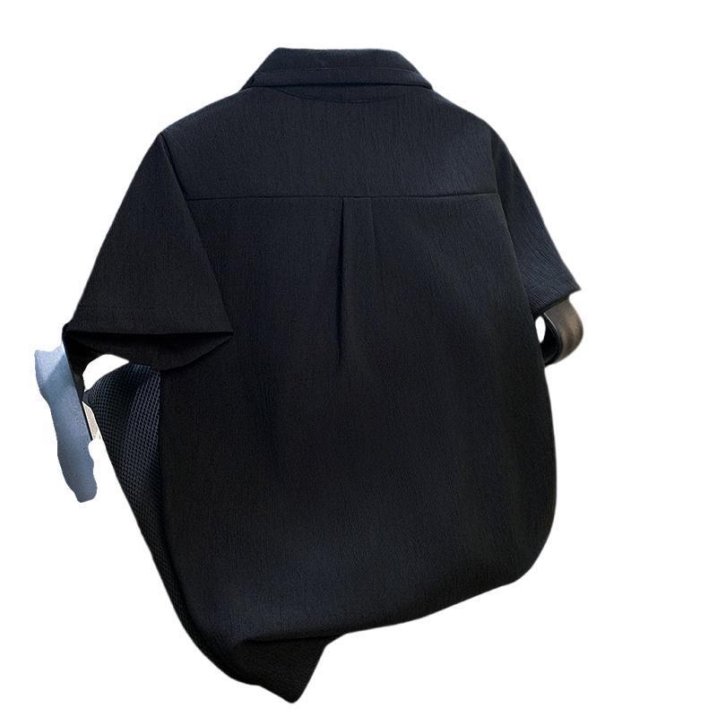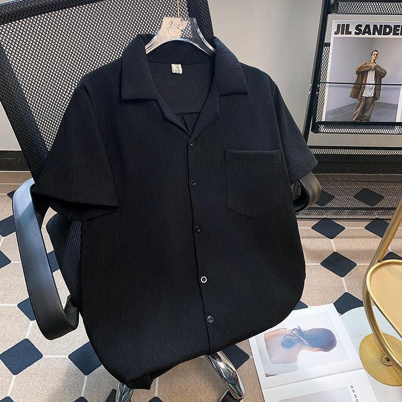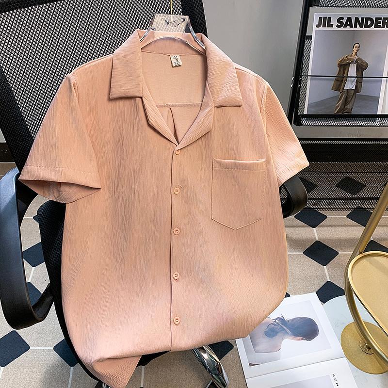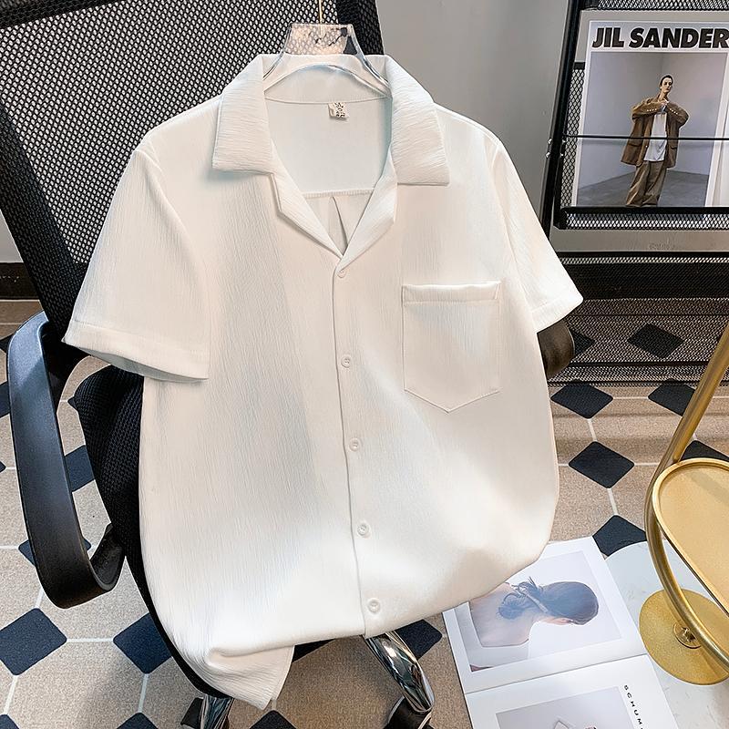 港风短袖衬衫男生夏季年新款简约翻领休闲痞帅时尚百搭上衣服