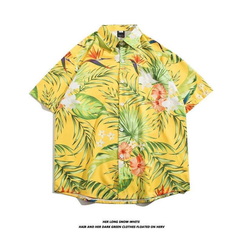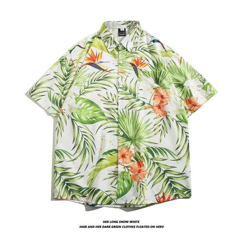 夏威夷沙滩短袖衬衫男夏季新款三亚海边度假风复古港风小众花衬衣