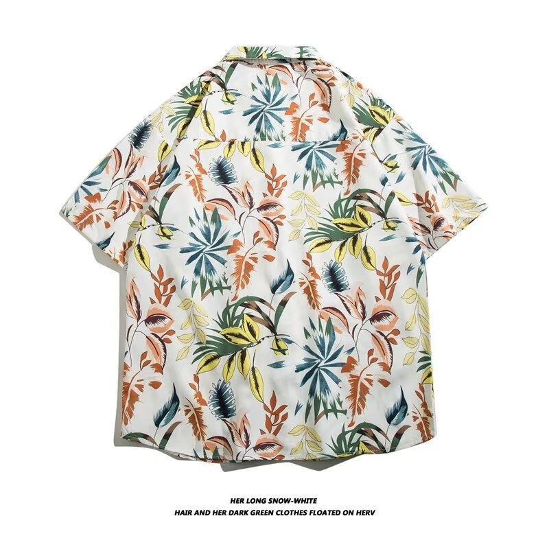 港风短袖花衬衫男士夏季新款日系休闲沙滩衬衣潮流宽松夏威夷外套