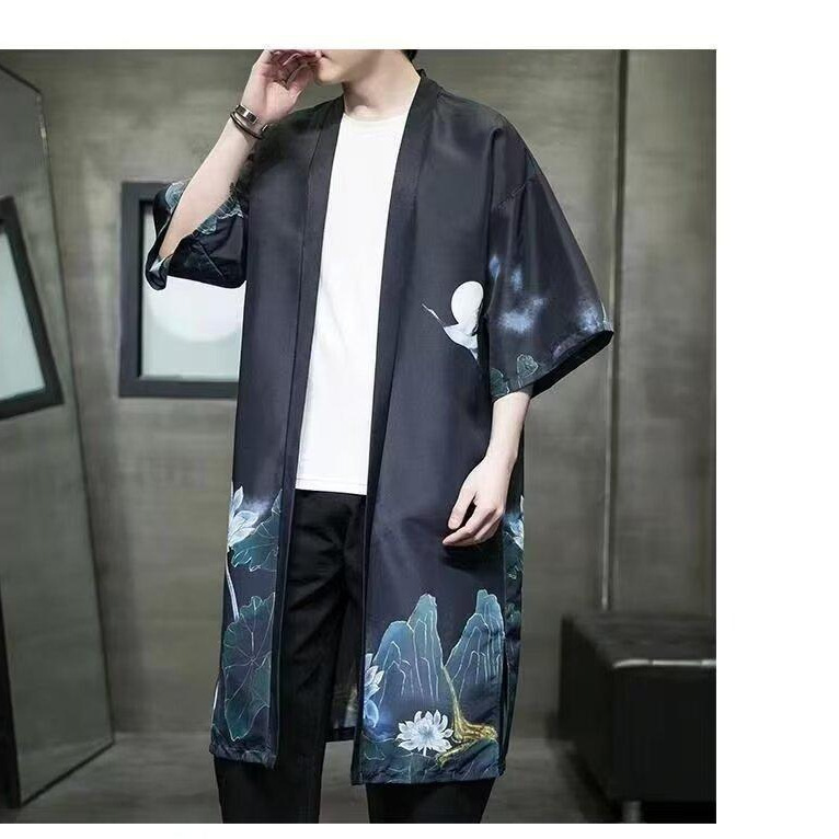 夏季新款外套男生中长款衬衣宽松型开衫防晒衣时尚百搭休闲风衬衫