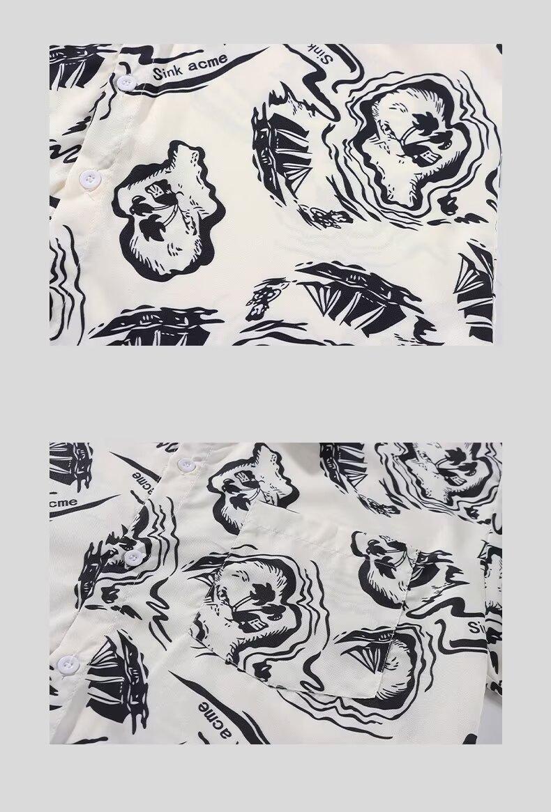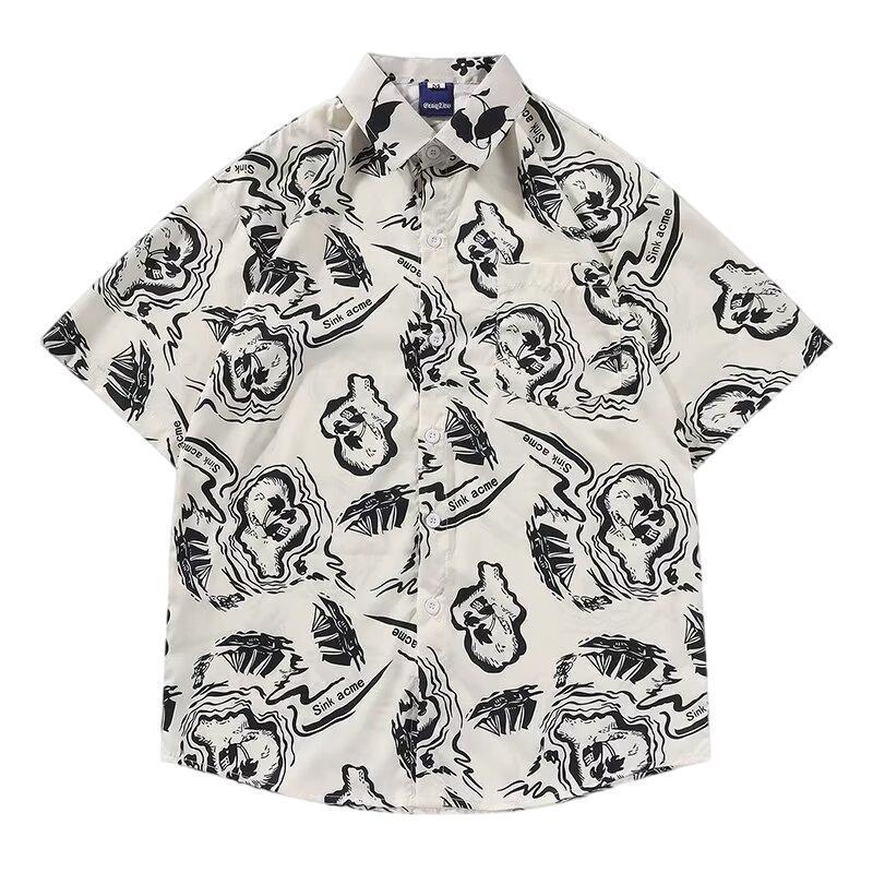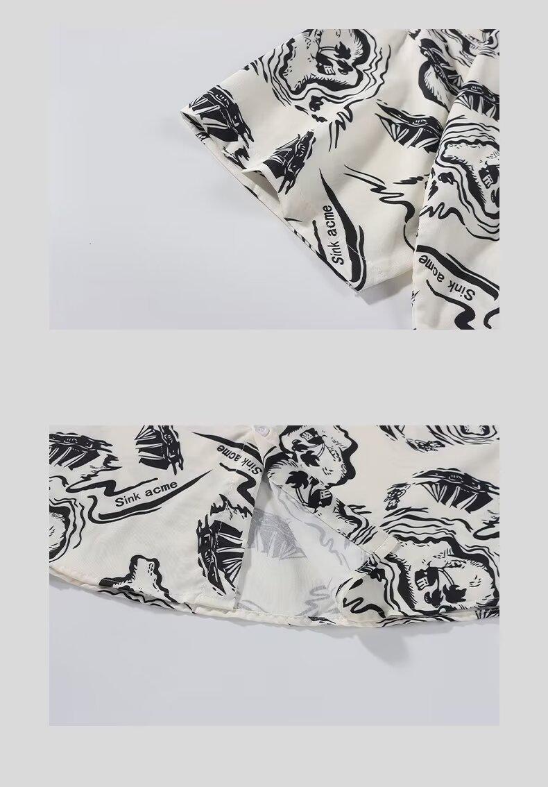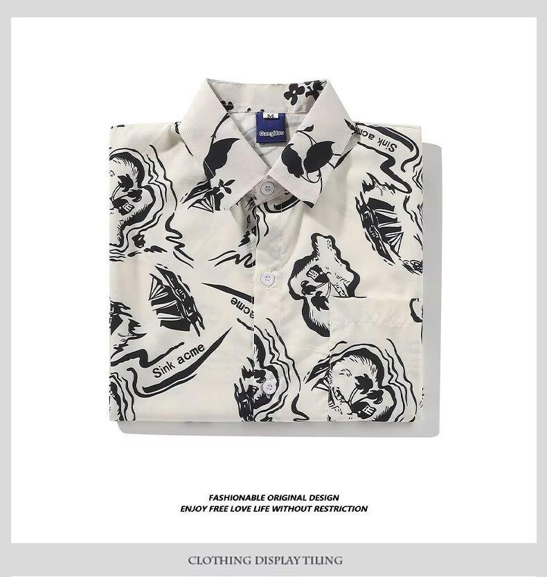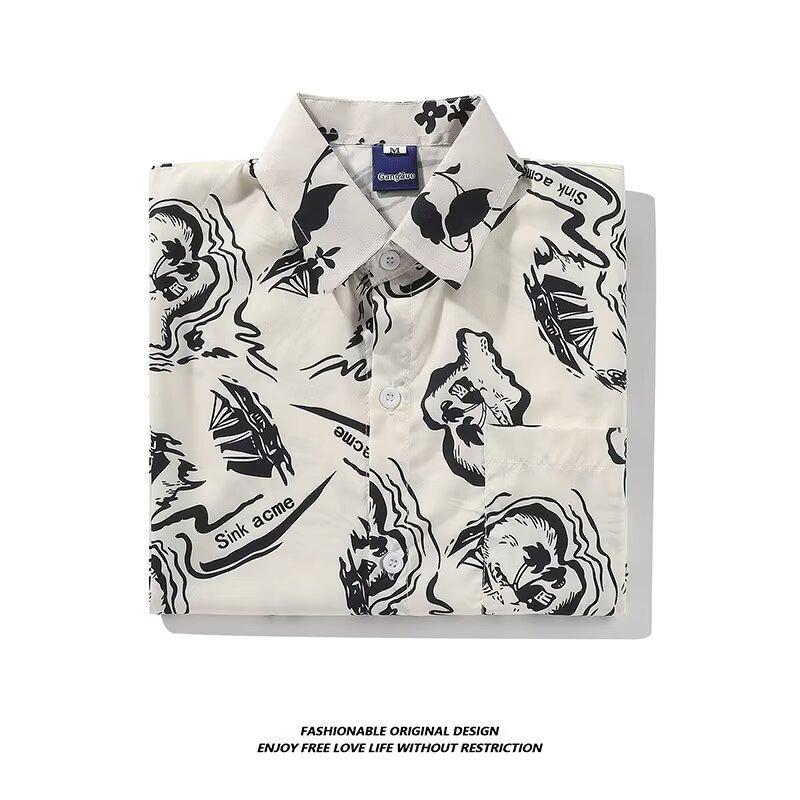 港风复古vitage花衬衫短袖男泰式夏威夷风小众设计感痞帅宽松衬衣
