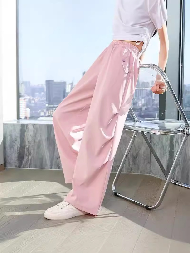 女童裤子薄款阔腿休闲裤新款春秋款冰丝工装裤儿童长裤运动裤
