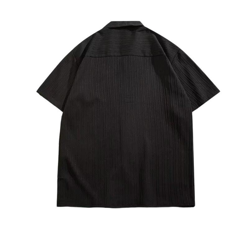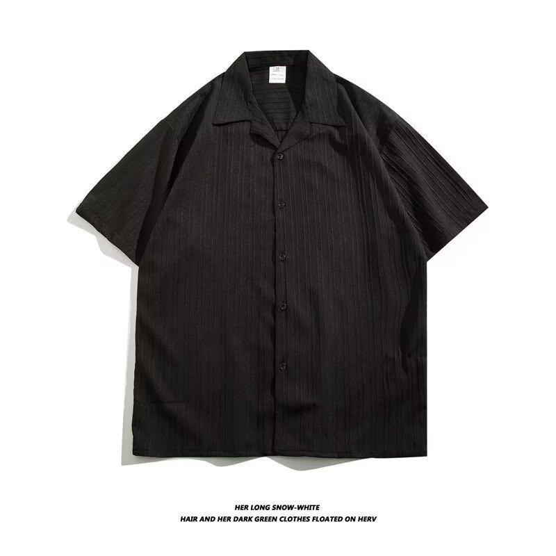 日系简约纯色短袖衬衫男生春夏季潮牌风宽松百搭时尚休闲百搭衬衣