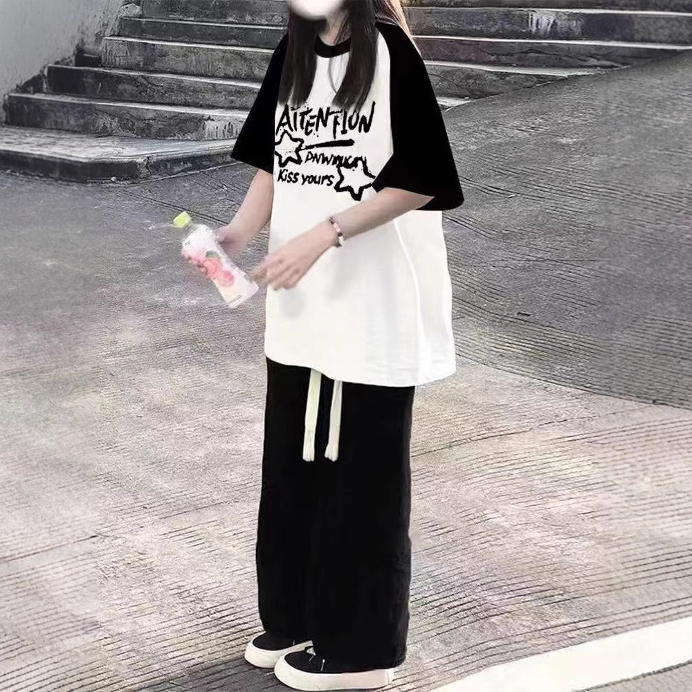 夏装纯棉盐系少女撞色短袖T恤高中初中学生休闲时尚宽松休闲ins潮
