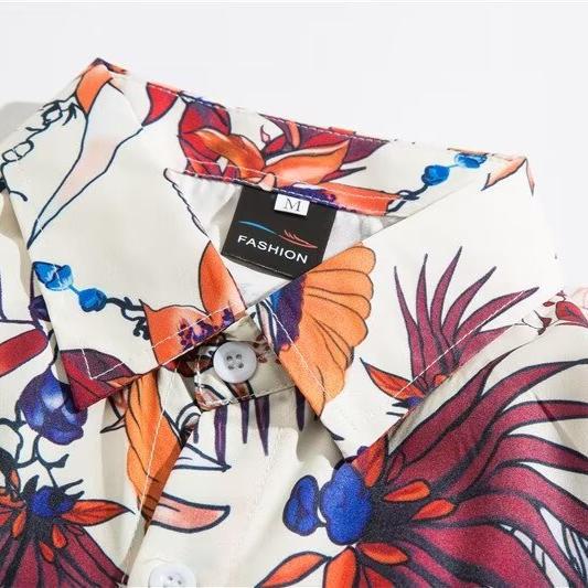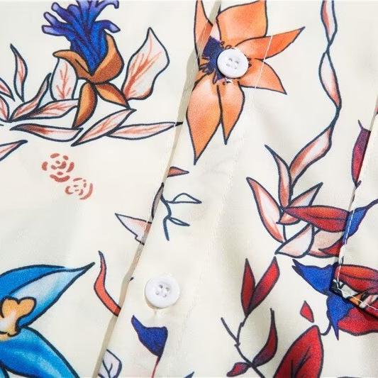 夏季新款短袖花衬衫男日系复古港味风设计感小众夏威夷风休闲衬衣