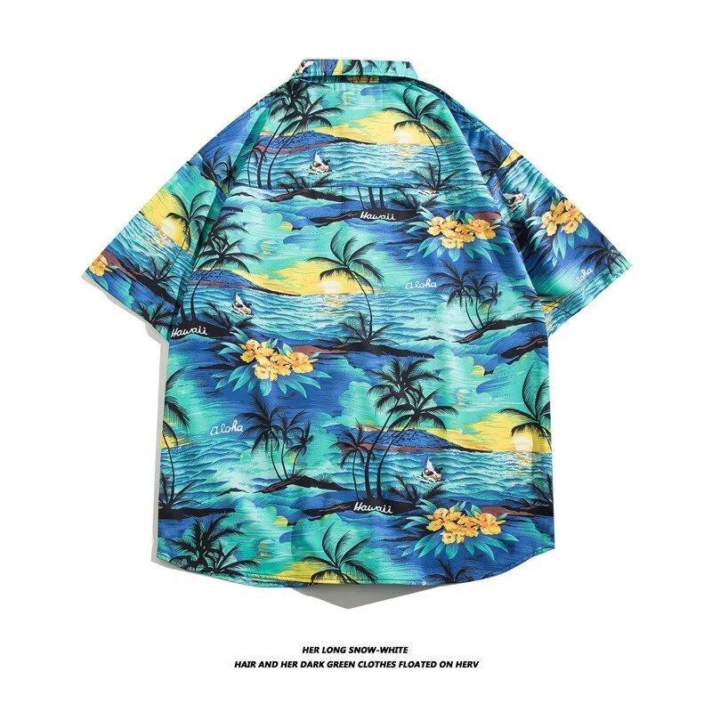 短袖花衬衫海南岛沙滩衬衣男夏季夏威风旅游装情侣款休闲宽松外套