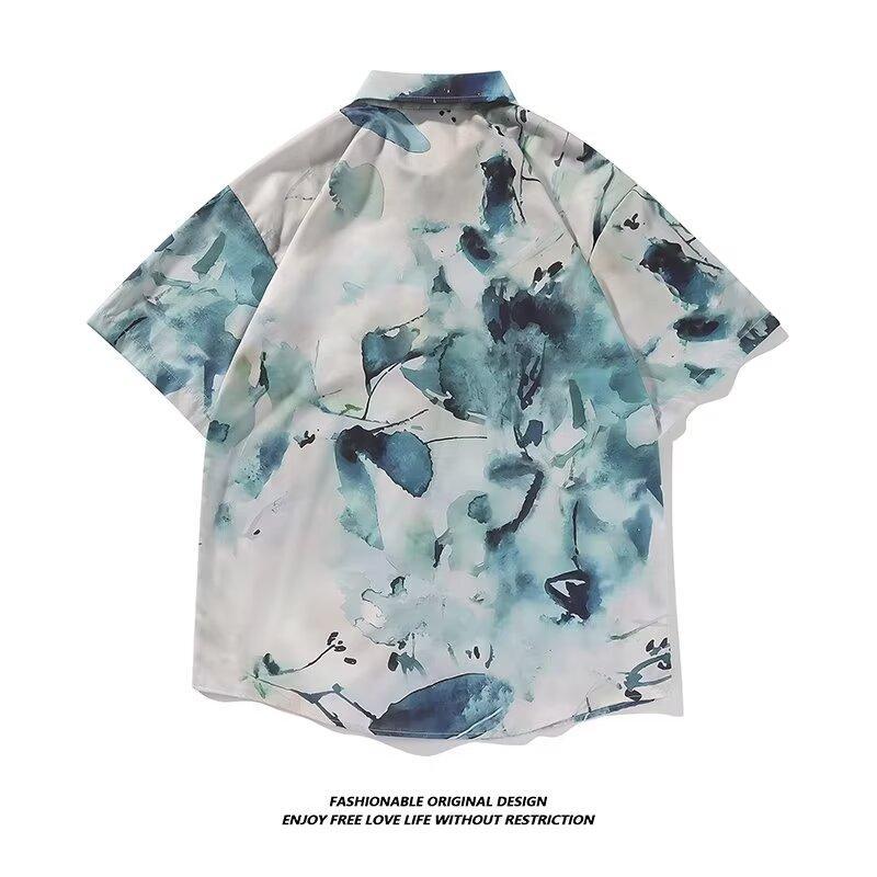 夏威夷度假沙滩凉快花式短袖衬衫男宽松痞帅日系复古潮流扎染上衣