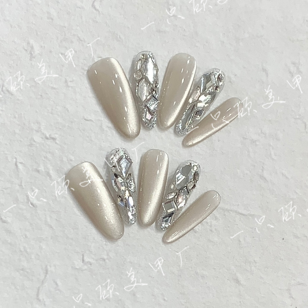 一只顾美甲厂【原创实拍】清冷千金贵气感清透侧光猫眼白月光指甲