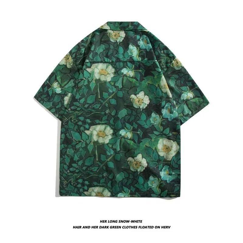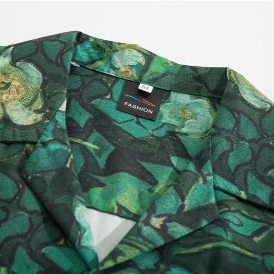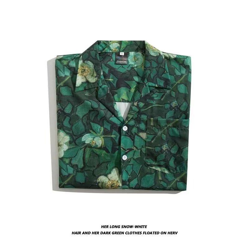 痞帅花衬衫男短袖夏季新款潮牌高级感中袖衬衣休闲五分袖开衫上衣