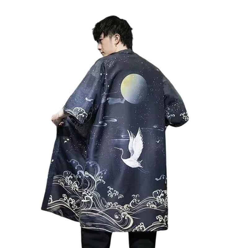 古风仙鹤衬衫明制道袍汉服夏季中国风男装长款防晒衣日系复古外套