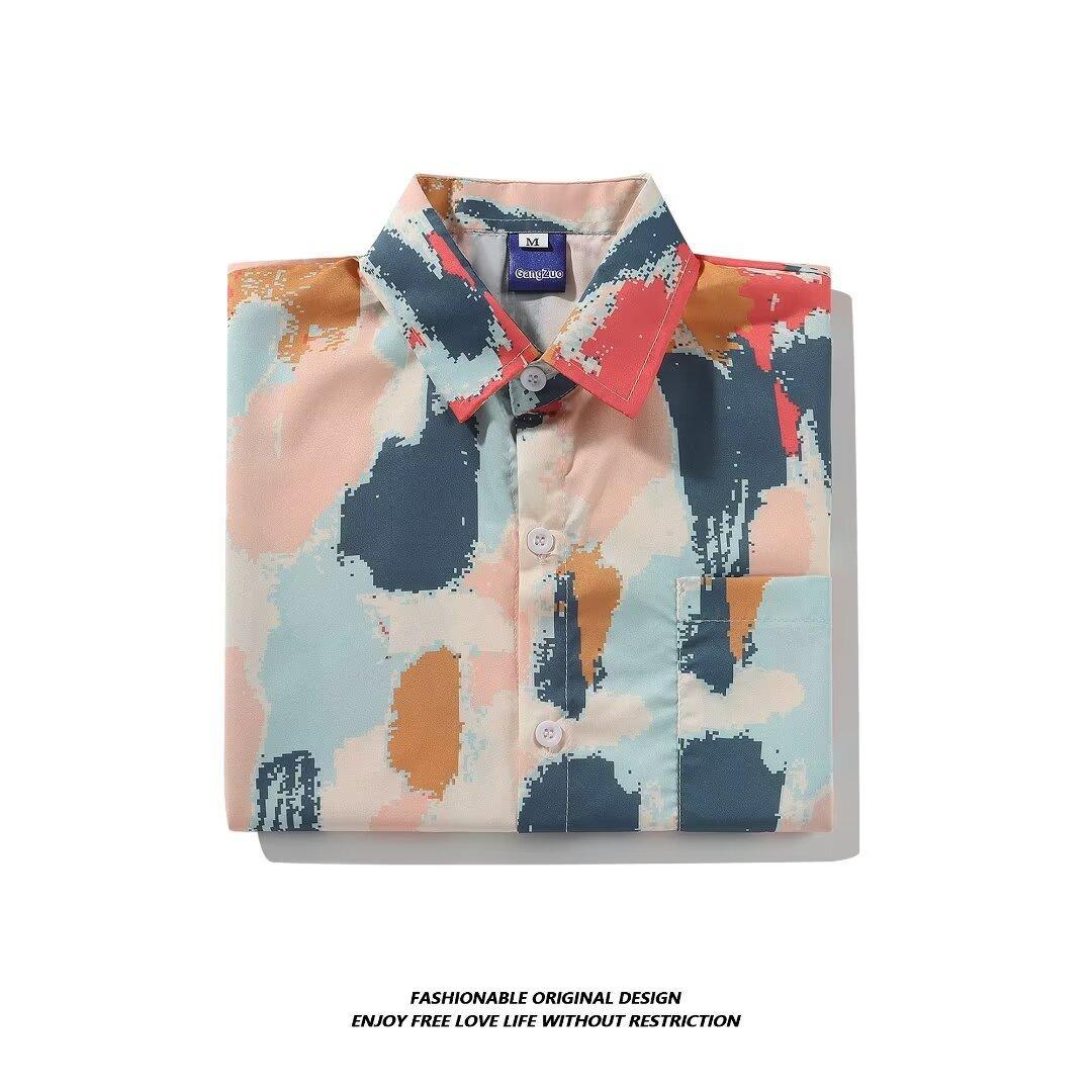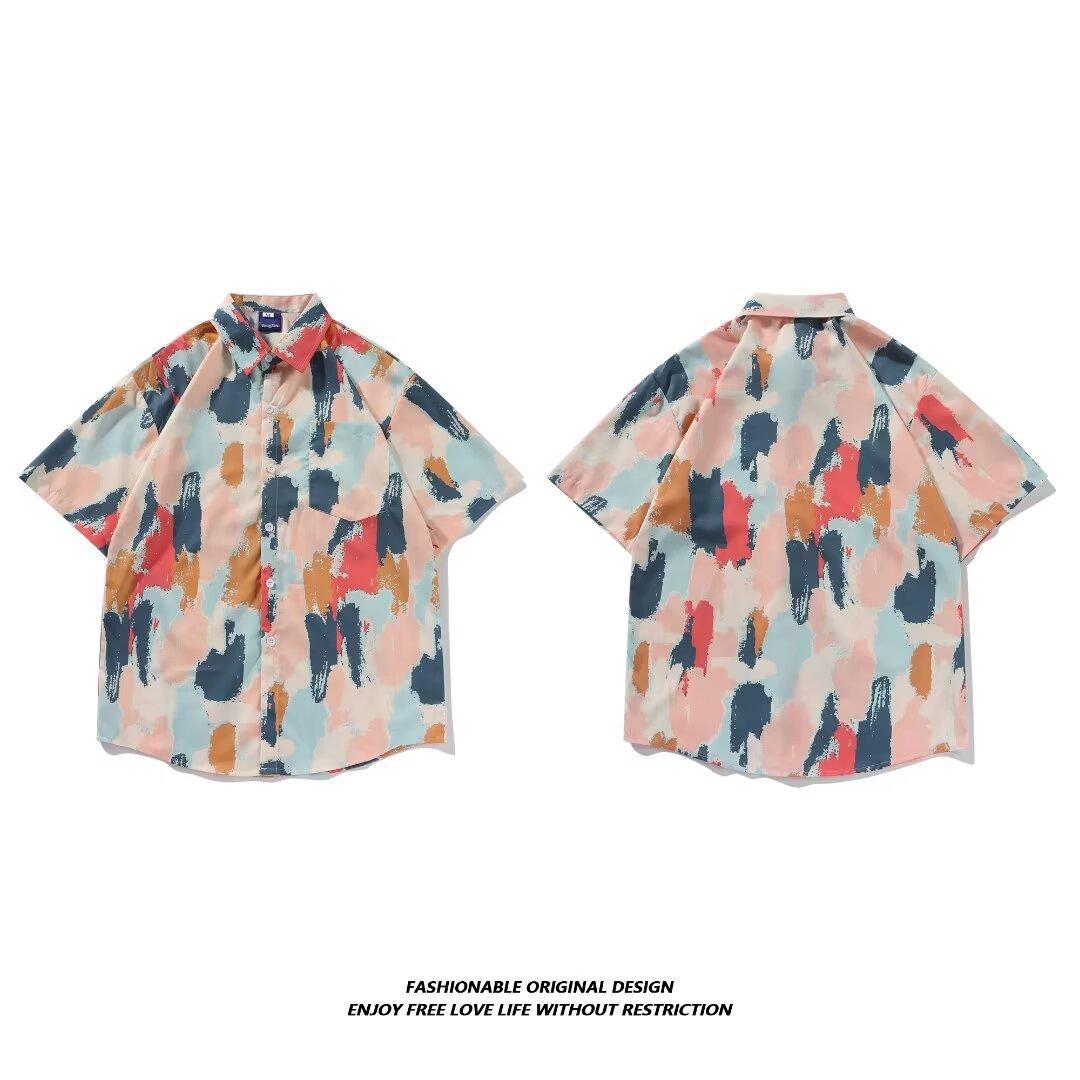夏威夷花衬衫夏季男生衬衣宽松休闲半袖速干海边沙滩度假风花衬衫