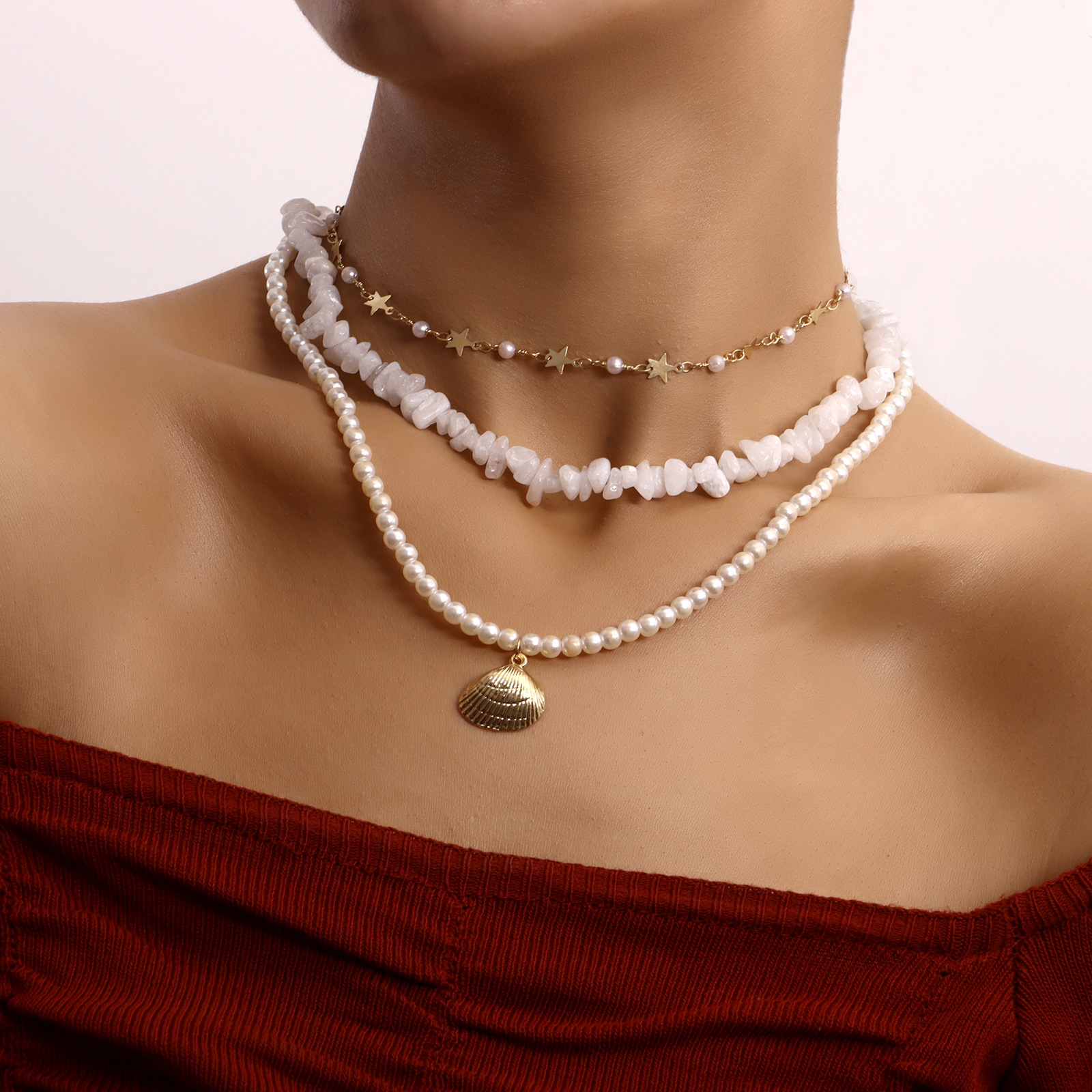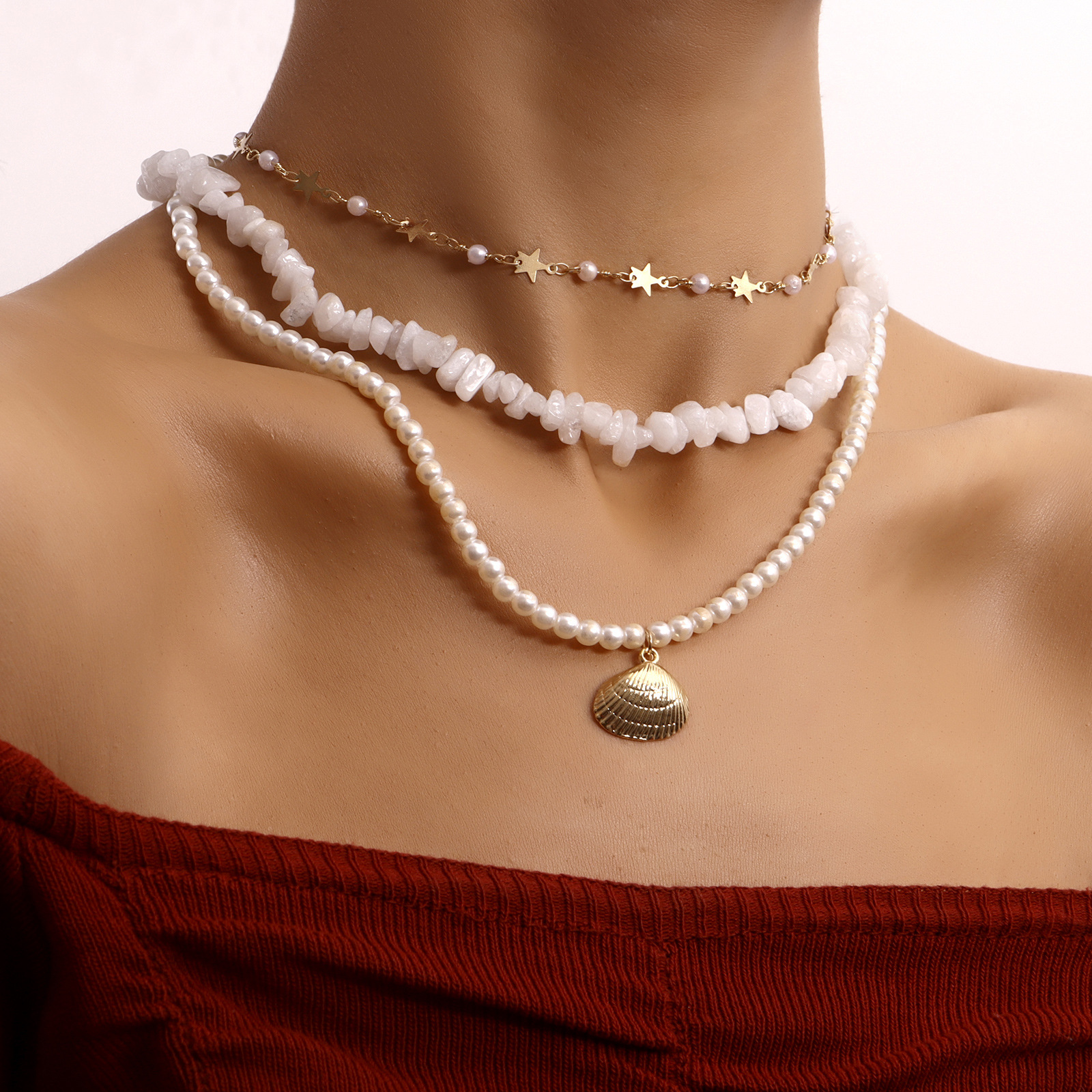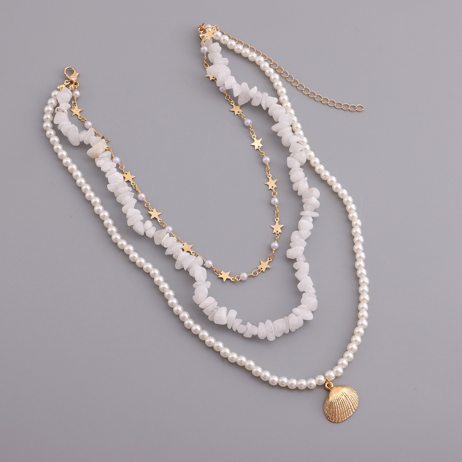 三层珍珠白色松石五角星扇贝吊坠项链女 轻奢风项饰