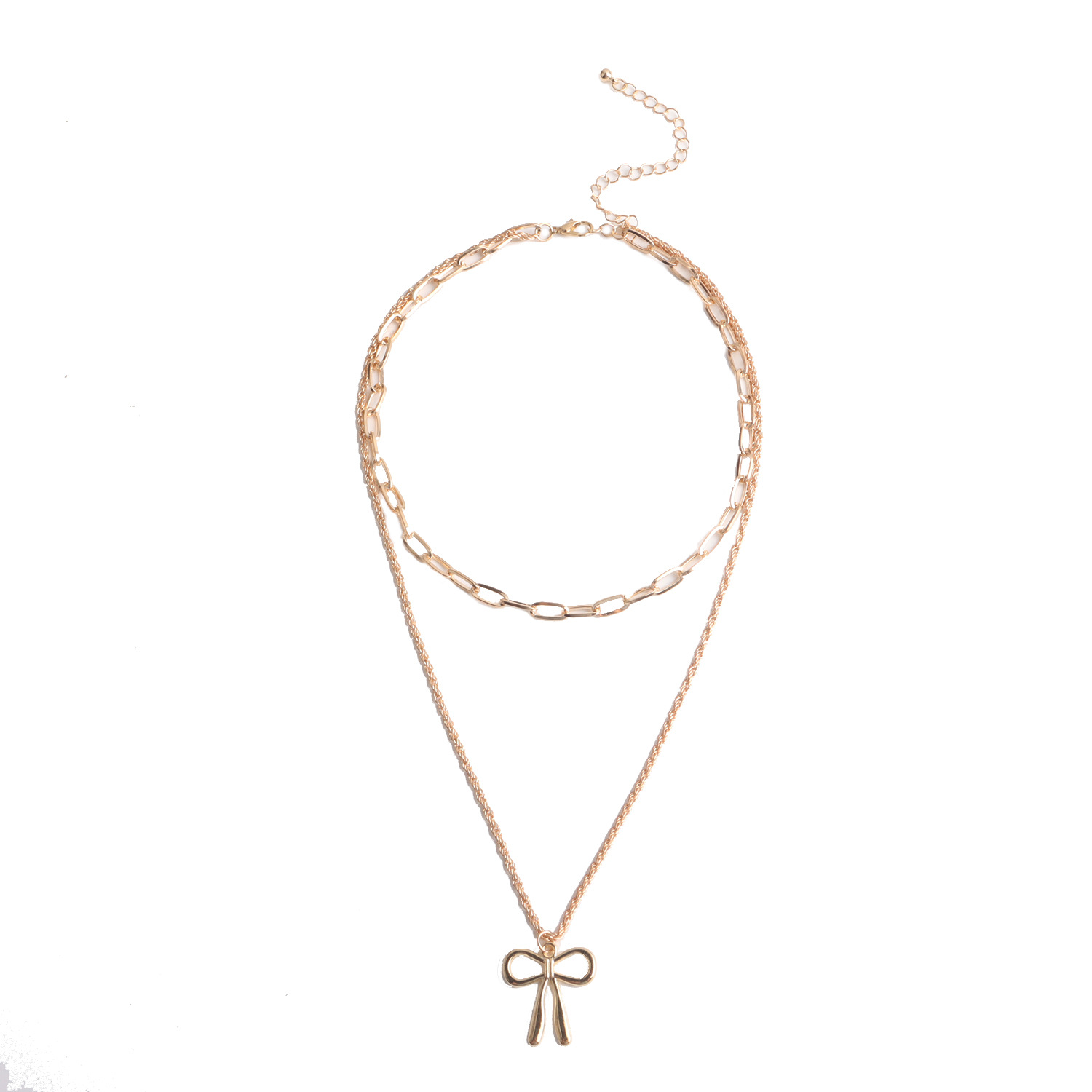 新品小孔链条蝴蝶结吊坠项链 双层朋克潮流个性项饰