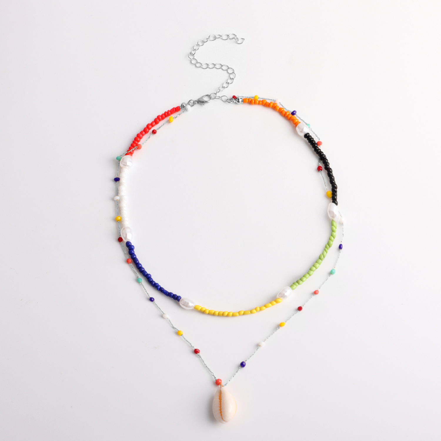 气质简约彩珠贝壳吊坠项链女 潮流朋克米珠珍珠项饰