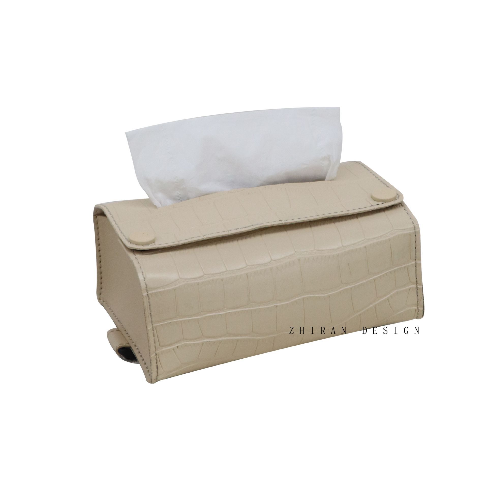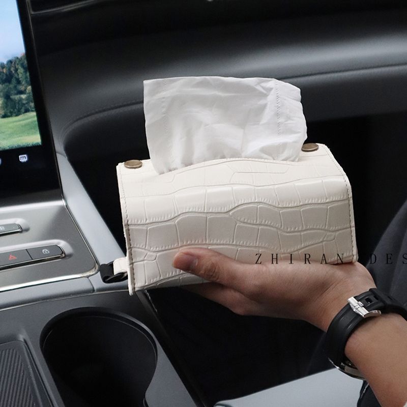 轻奢高级感鳄鱼皮车载纸巾盒汽车纸巾包挂式轻奢扶手箱抽纸盒套