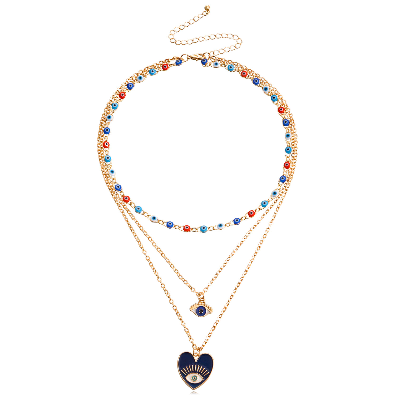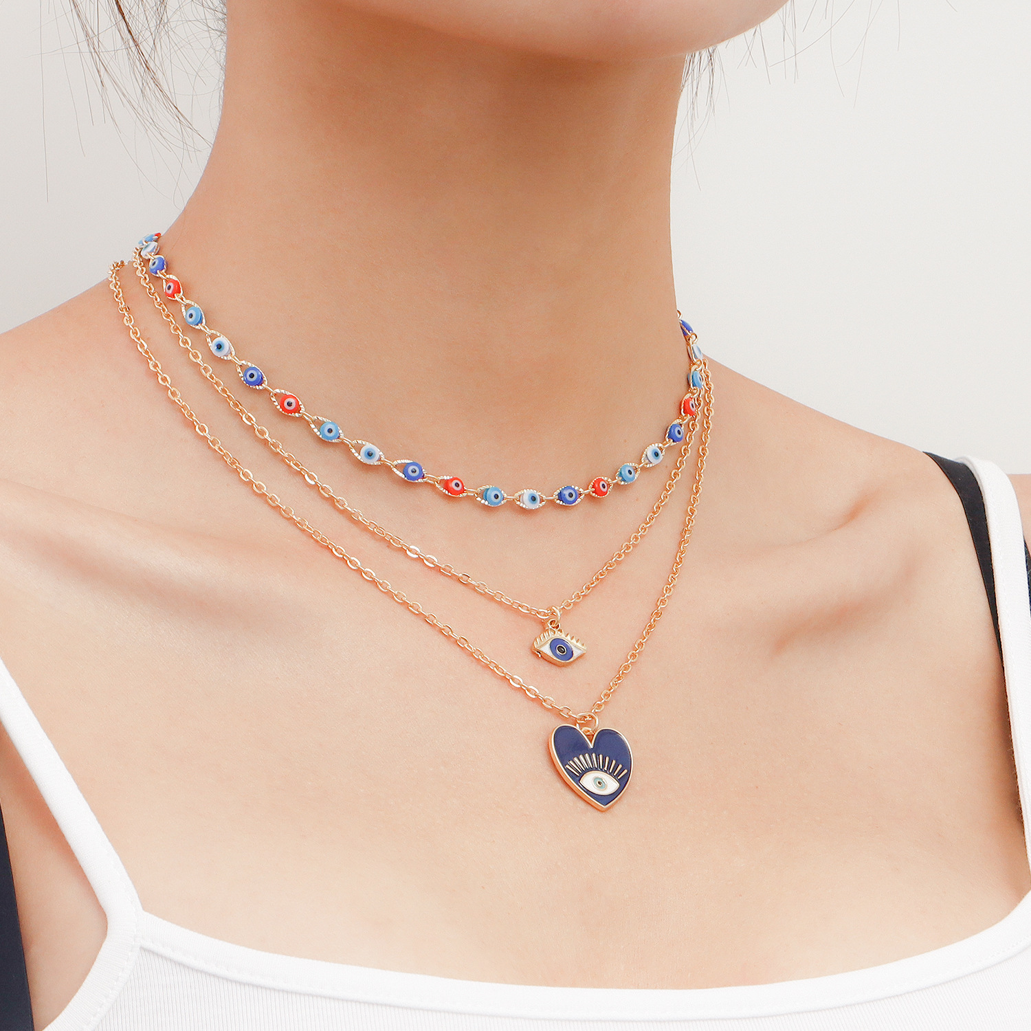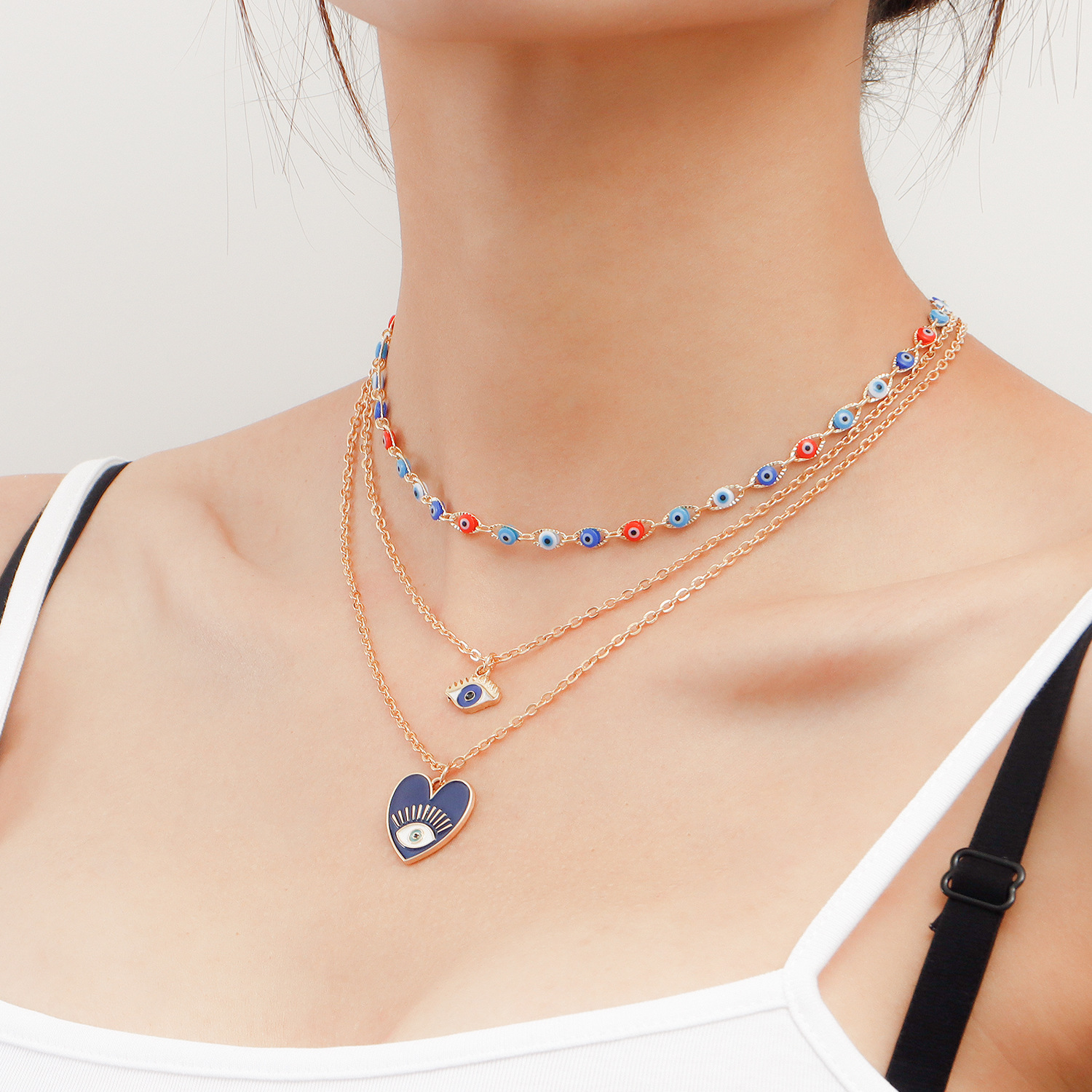 新款多层恶魔之眼爱心吊坠项链女 小众轻奢百搭项饰