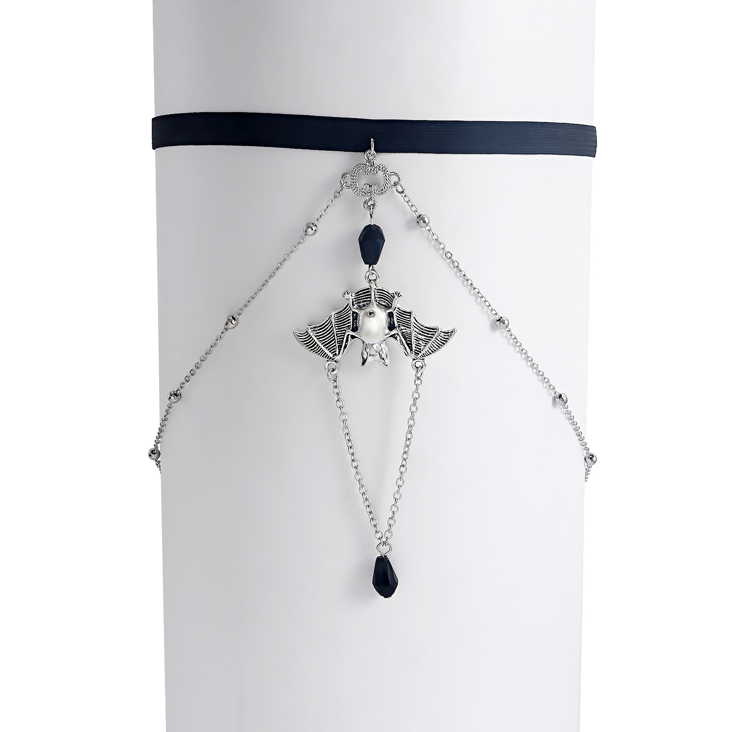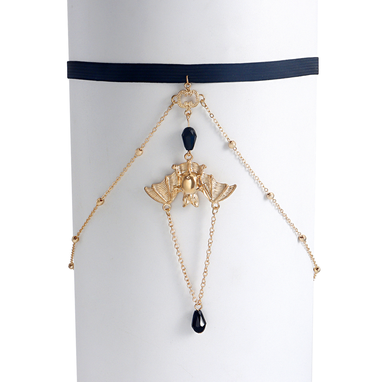 弹力带调节链条蝙蝠吊坠黑水晶腿链女辣妹大腿链