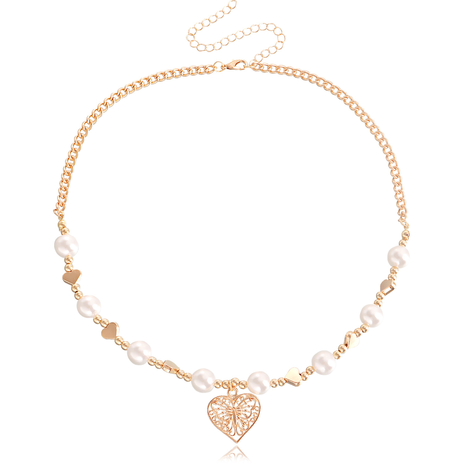 复古仿珍珠锁骨链拼接个性辣妹项饰欧美简约几何爱心潮流金属项链