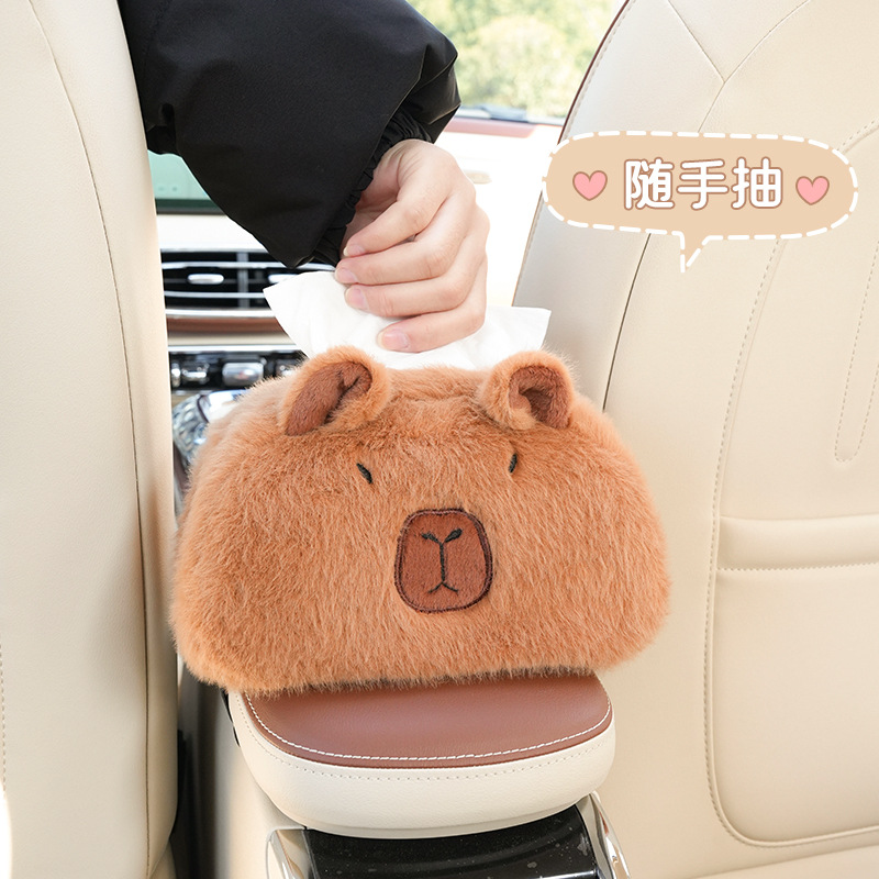 卡皮巴拉车载纸巾盒 多功能车用扶手箱抽纸盒 卡通挂式纸巾盒