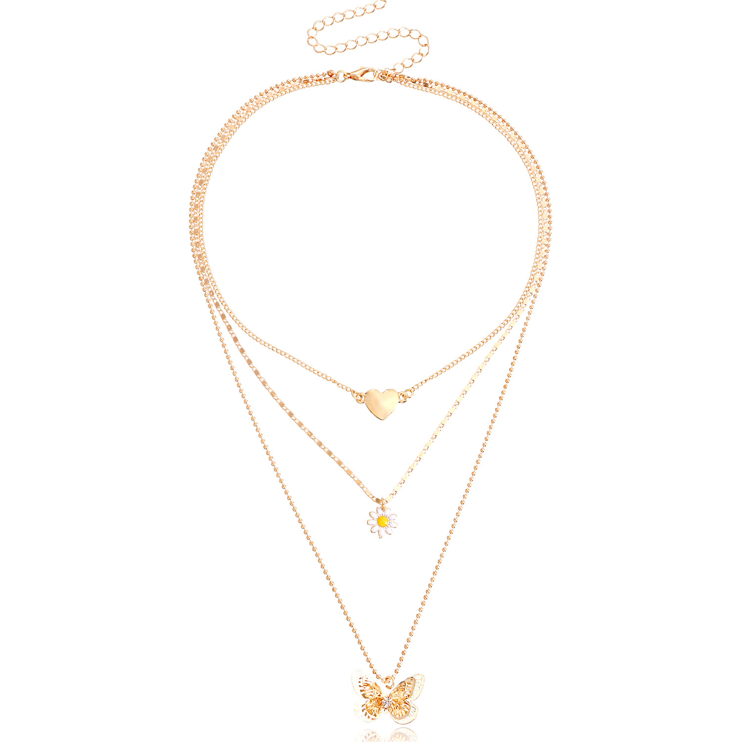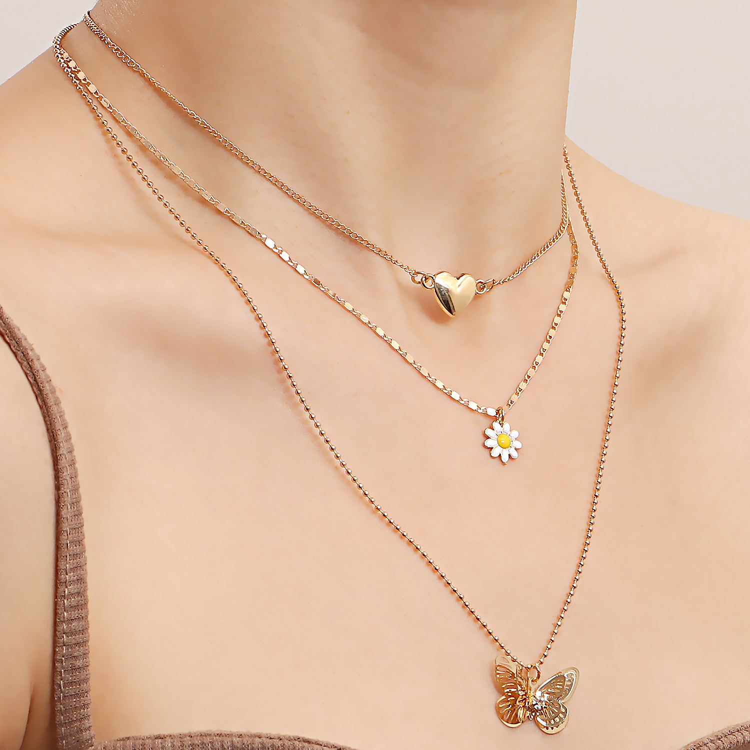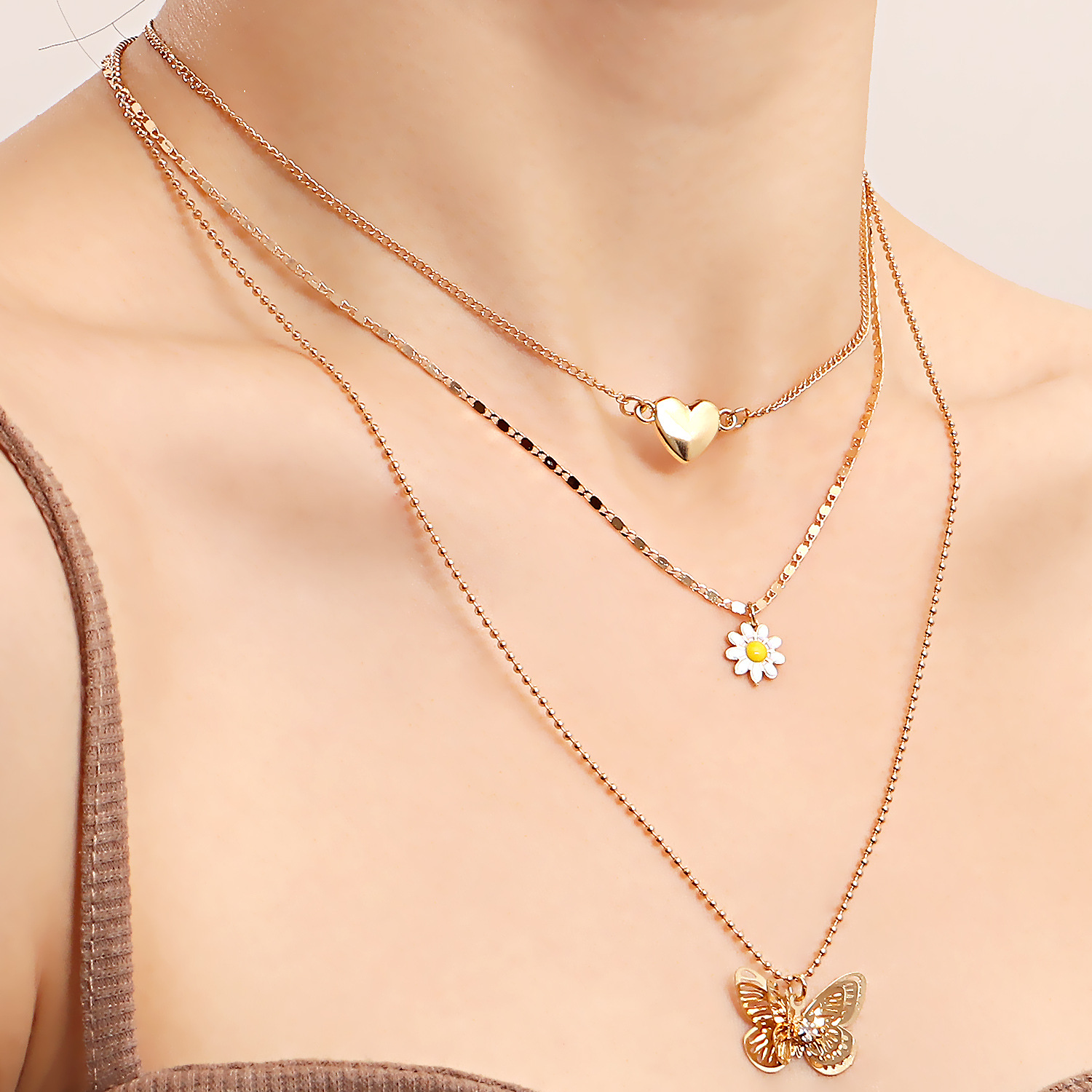 潮流多层爱心镂空蝴蝶项链女 小众设计感轻奢