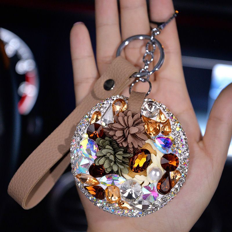 车钥匙挂件女士款个性创意车内饰品水晶钥匙链皮扣挂绳
