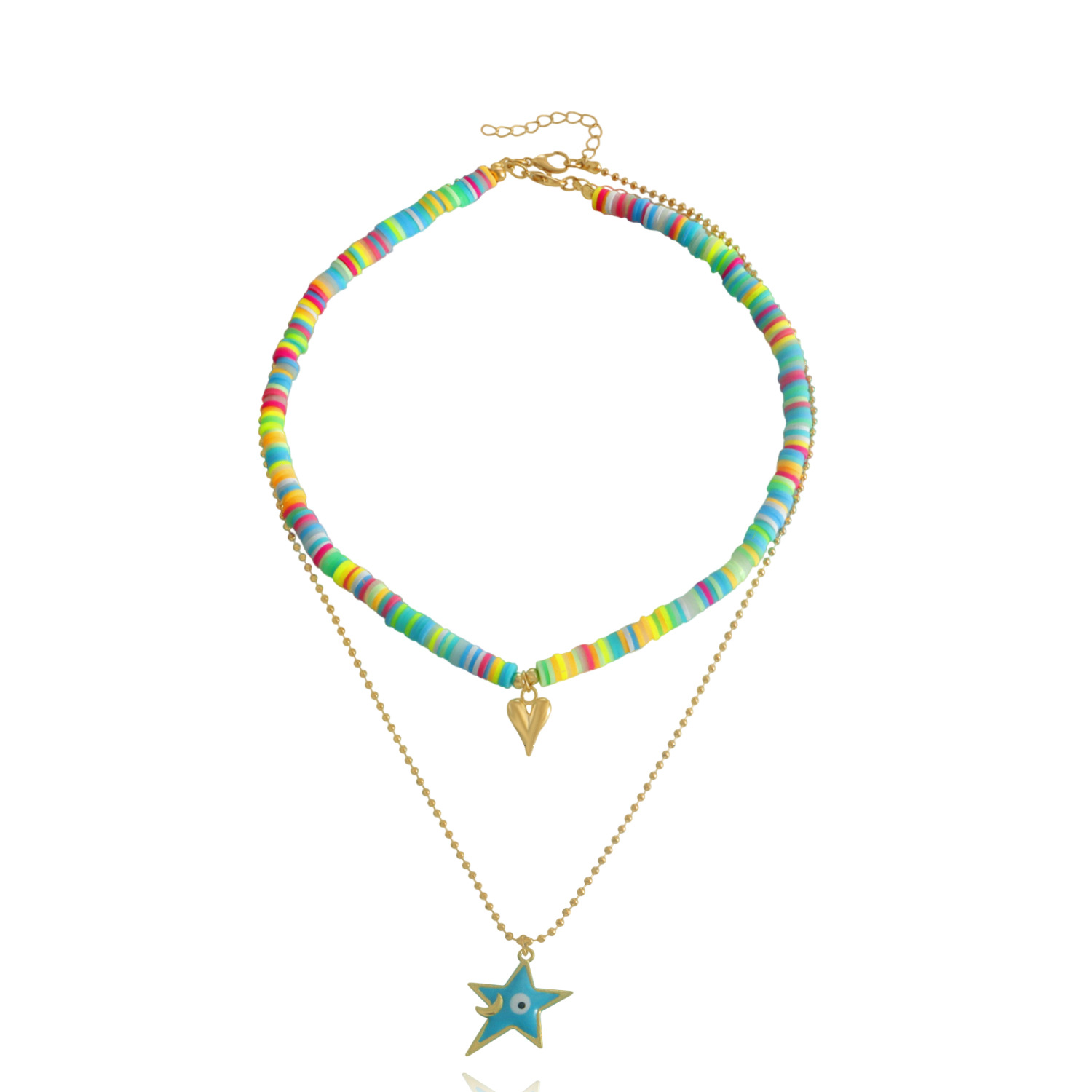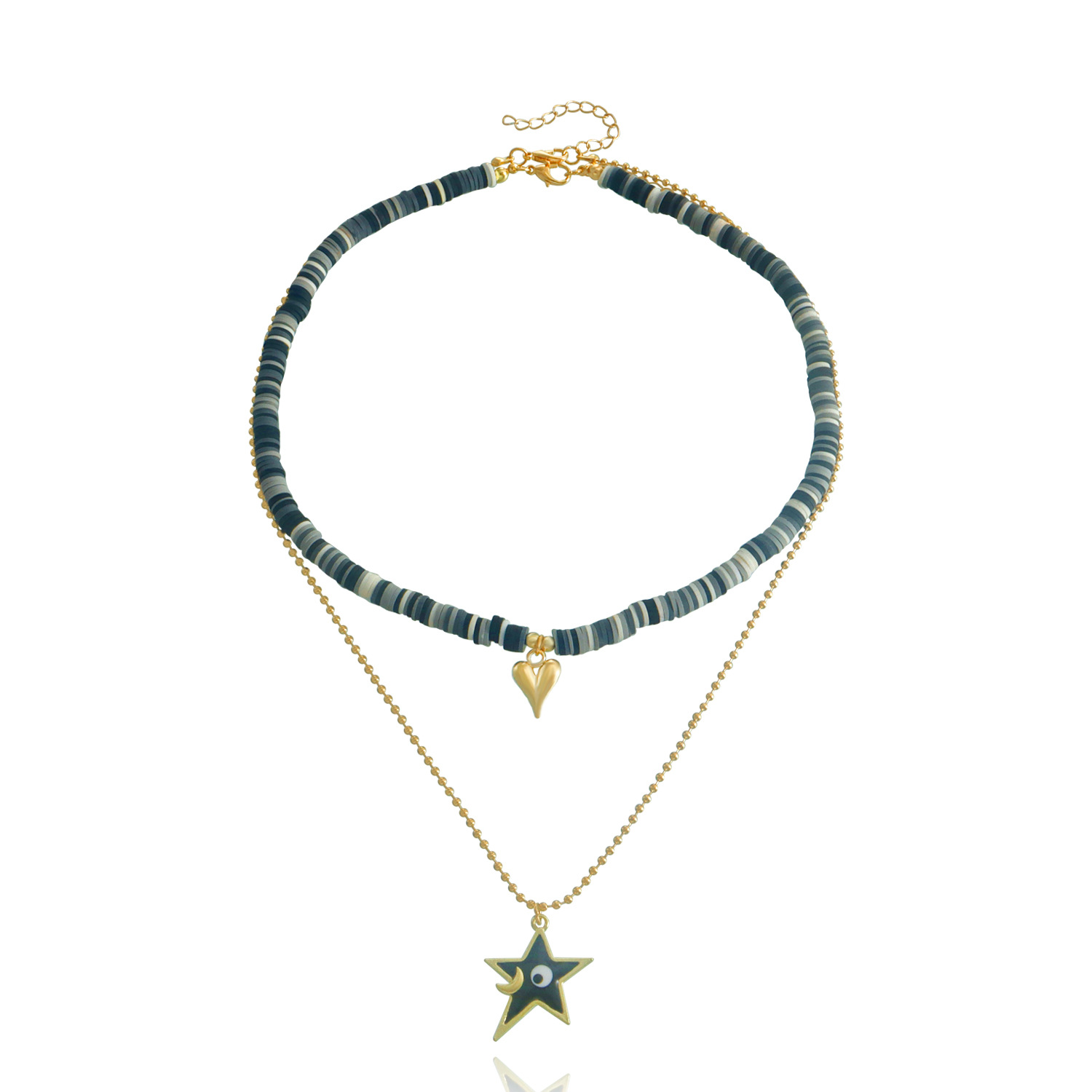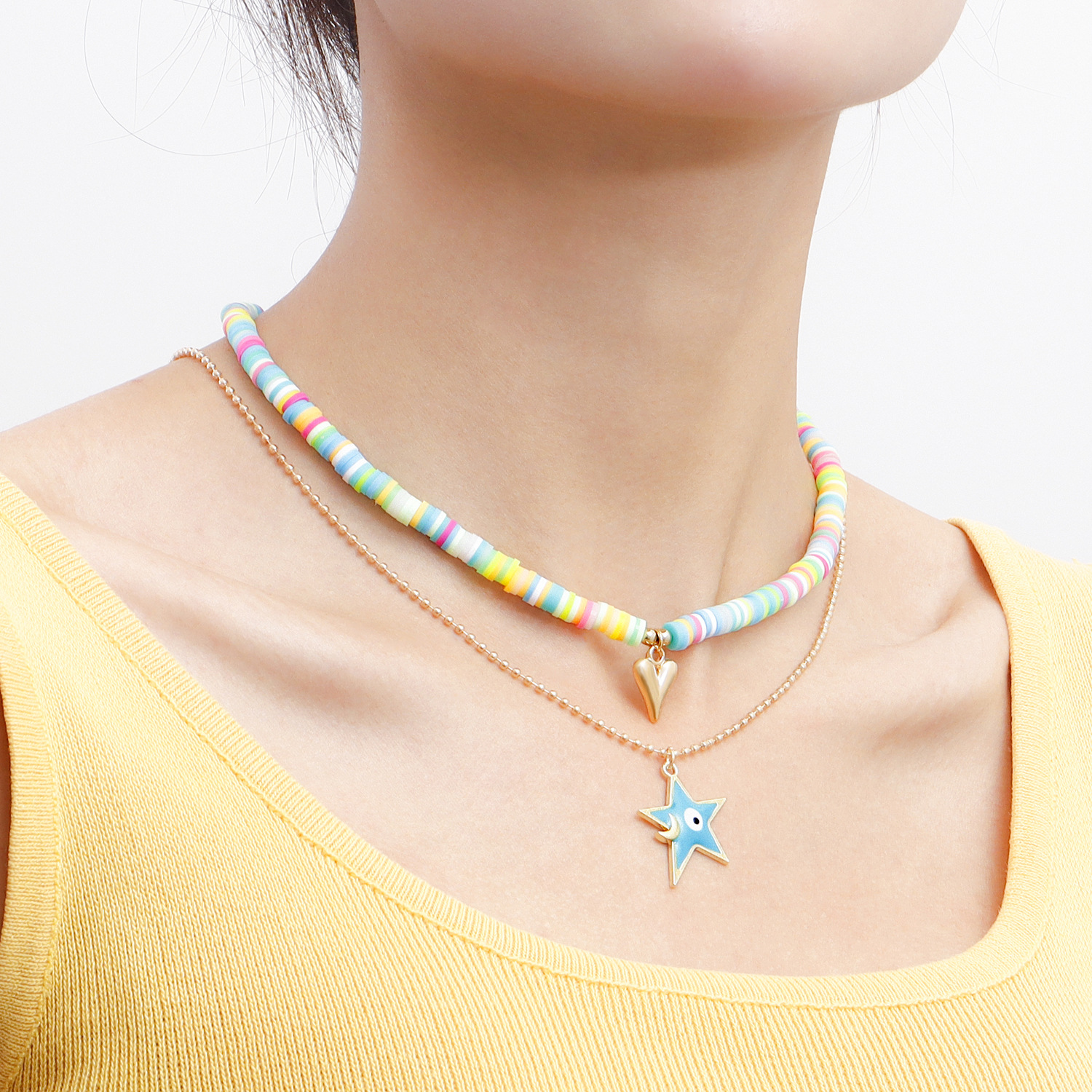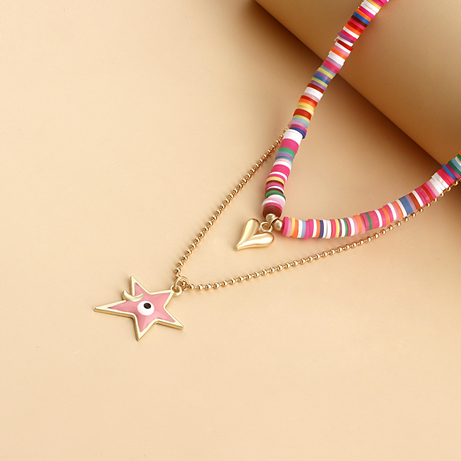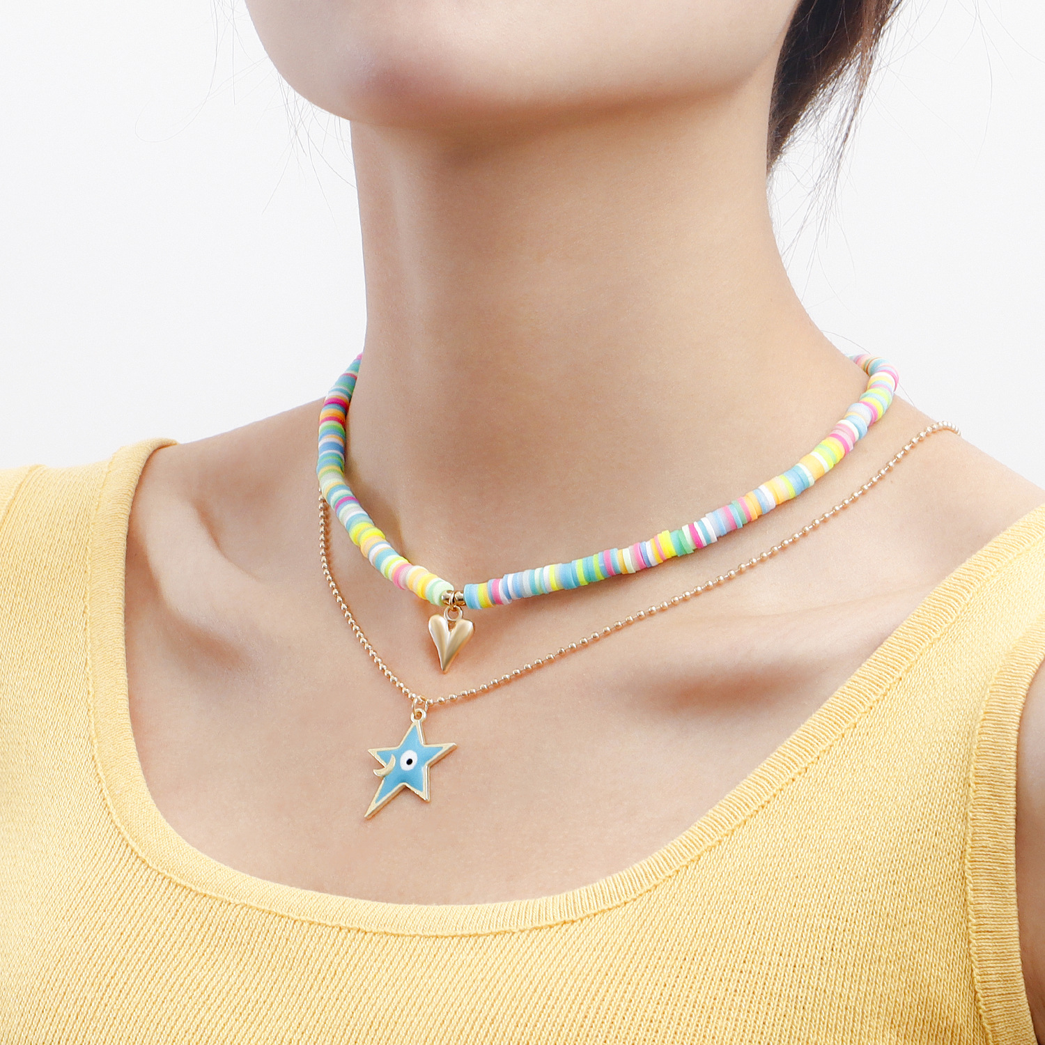 波西米亚彩色软陶恶魔之眼异形五角星爱心项链女