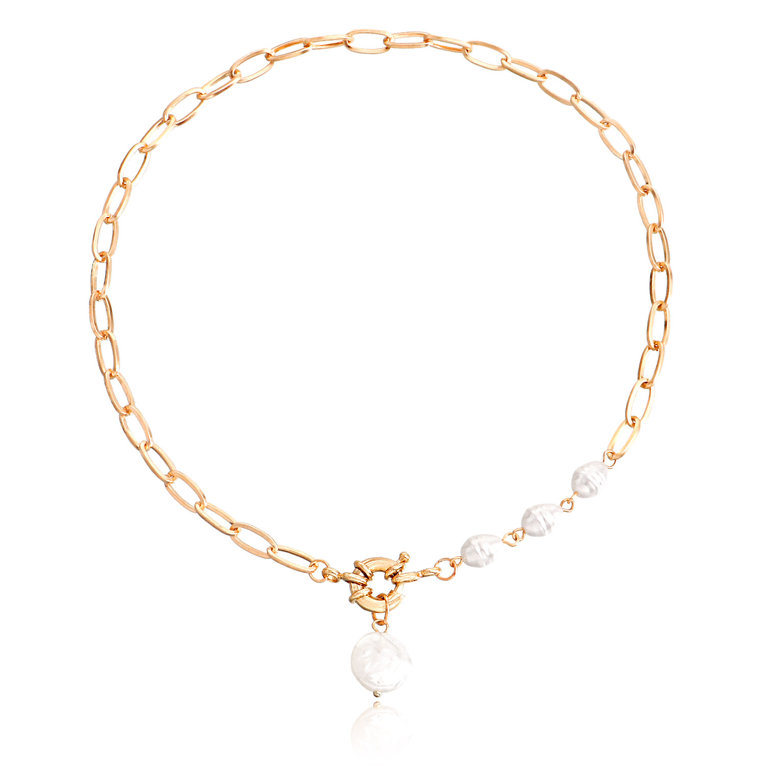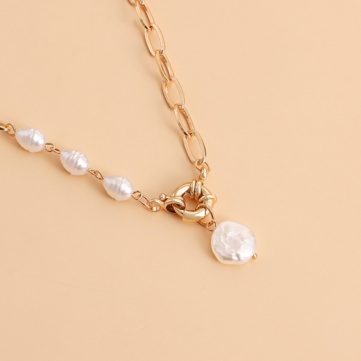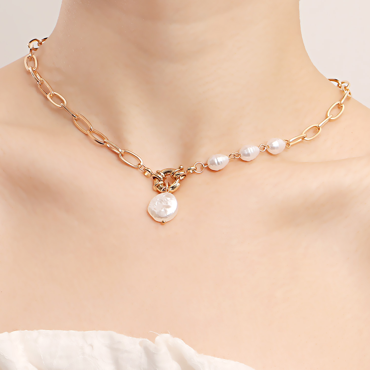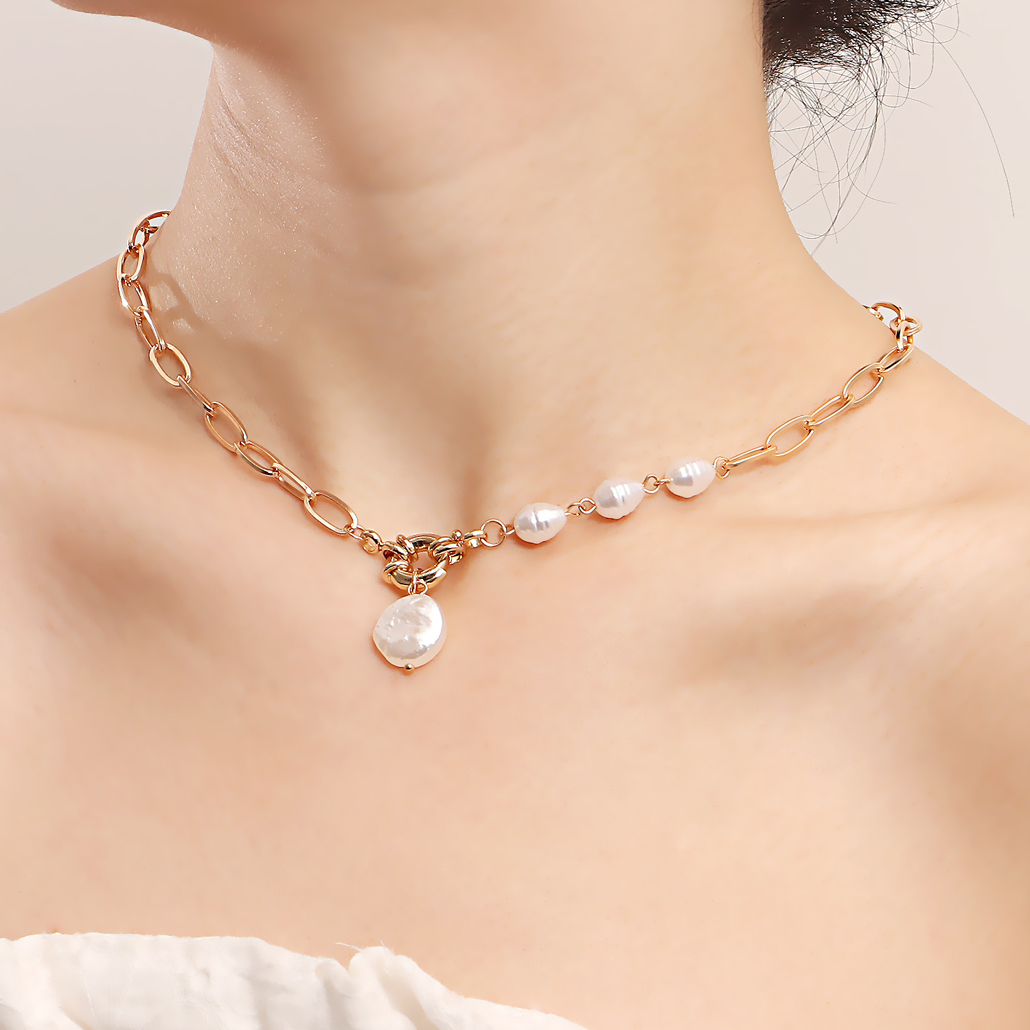 朋克简约单层回形链珍珠吊坠项链女ins百搭项饰