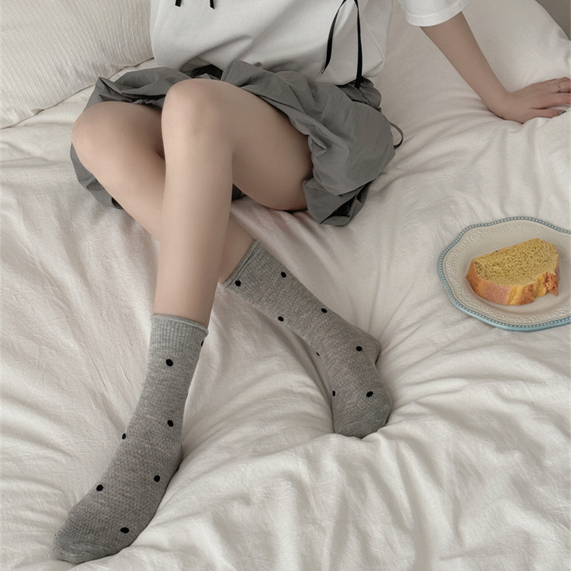 波点中筒堆堆袜子女ins潮夏季薄款棉日系学生网眼透气卷边棉袜潮