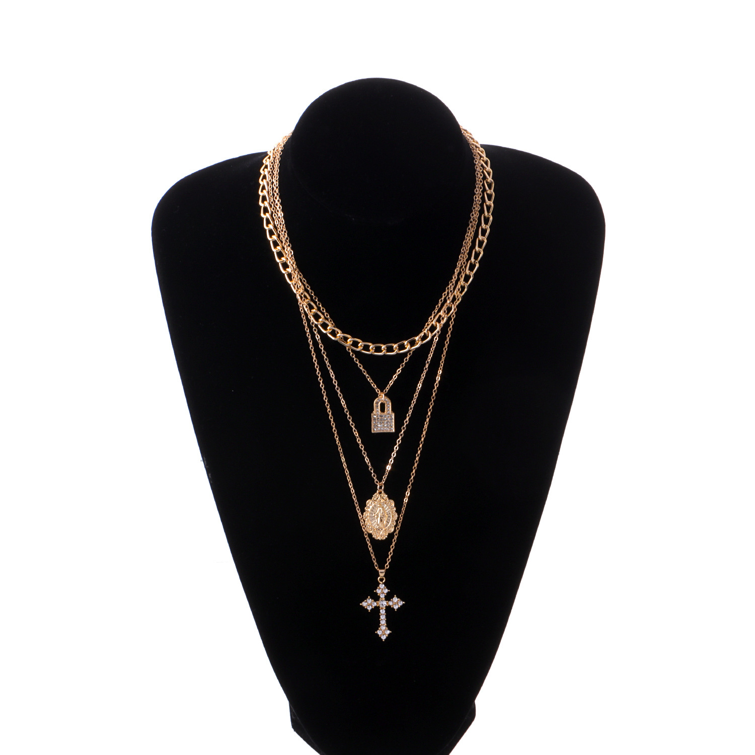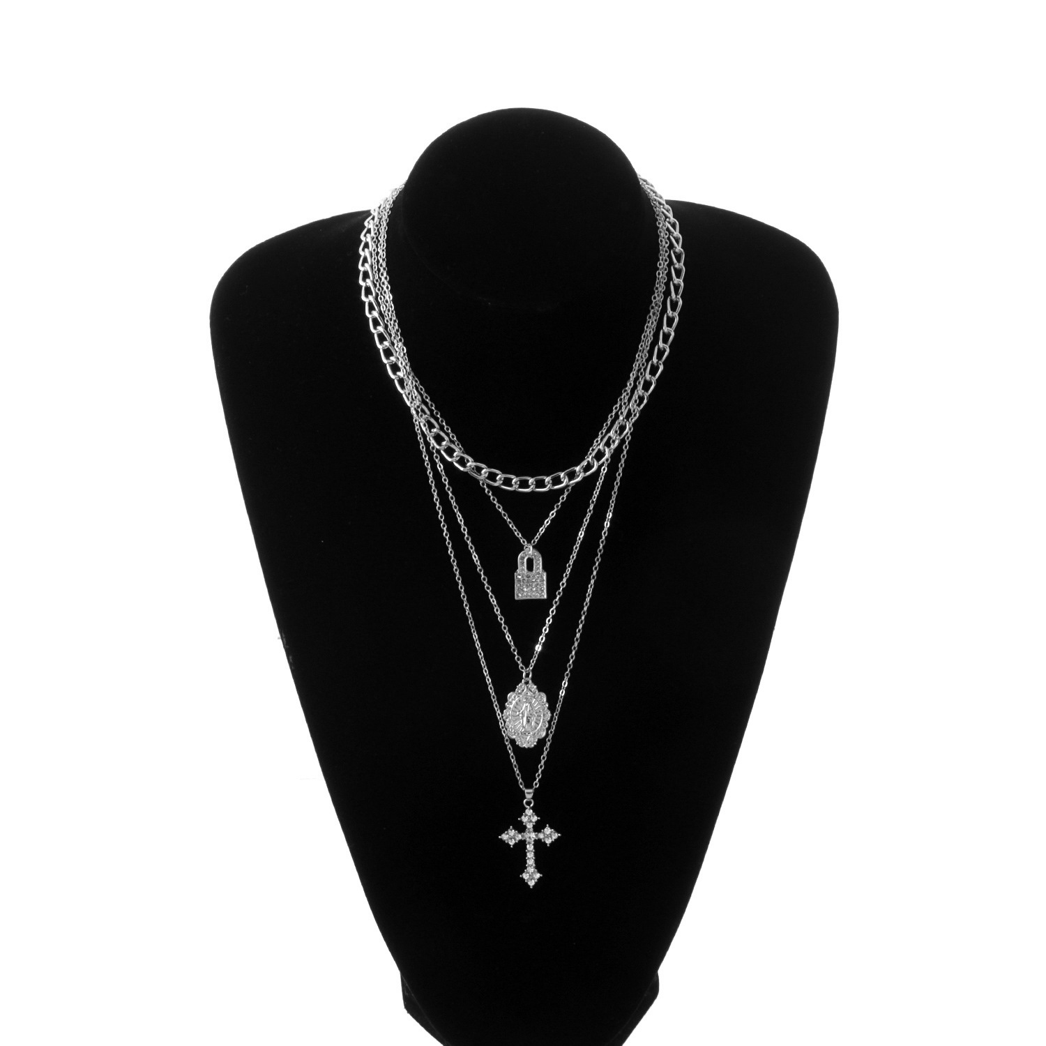 夸张满钻十字架锁形吊坠项链 潮流潮流几何个性项饰