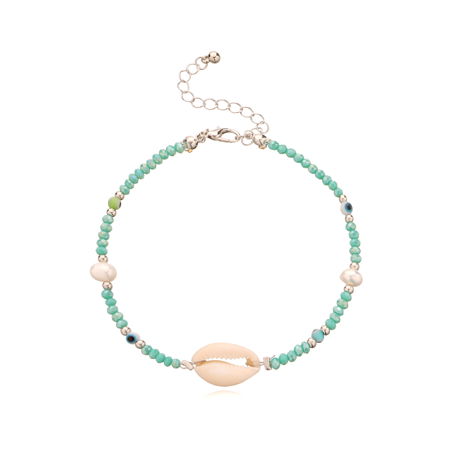 珍珠贝壳沙滩脚链女 彩色米珠眼睛脚饰