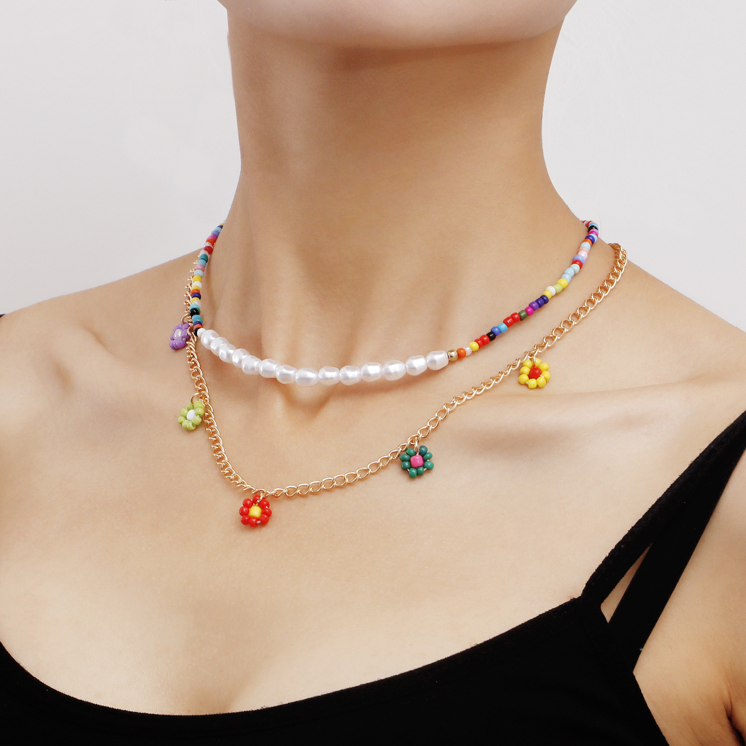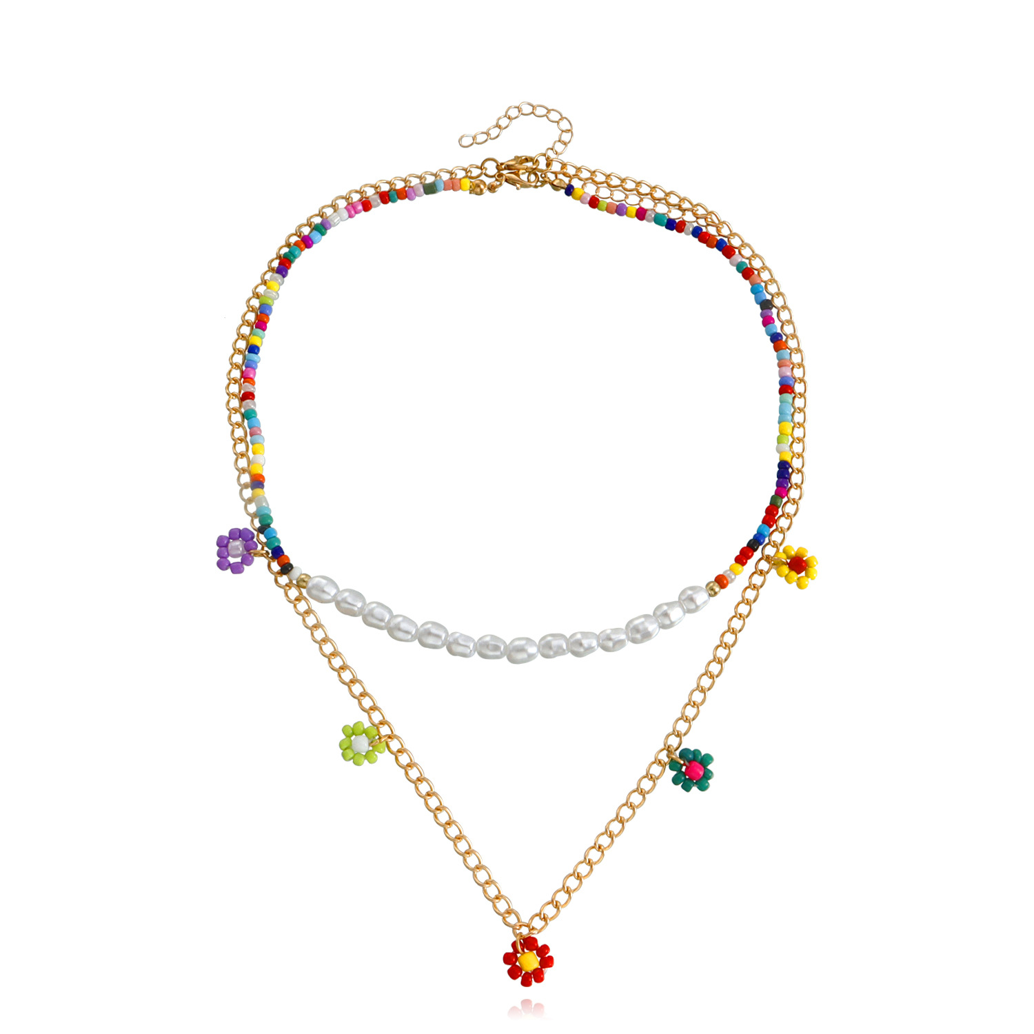 复古手工编织雏菊花朵串珠项链女 ins七彩米珠项饰