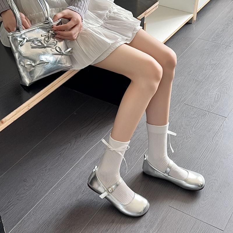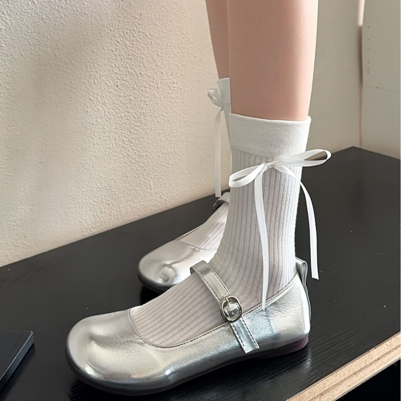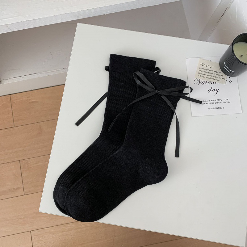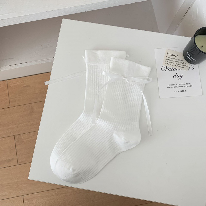 蝴蝶结丝带纯欲风透气芭蕾风竹棉堆堆袜子女jk洛丽塔配小皮鞋