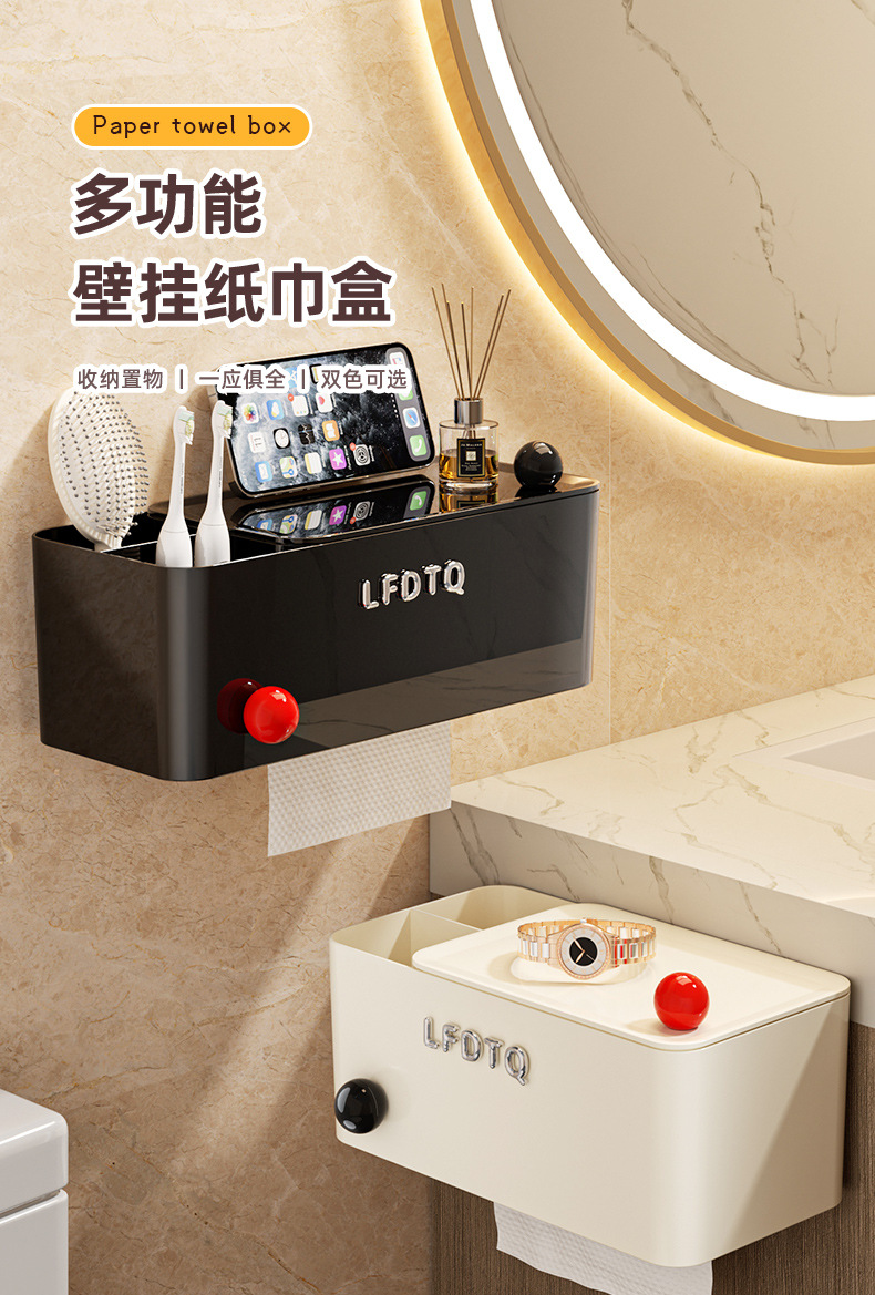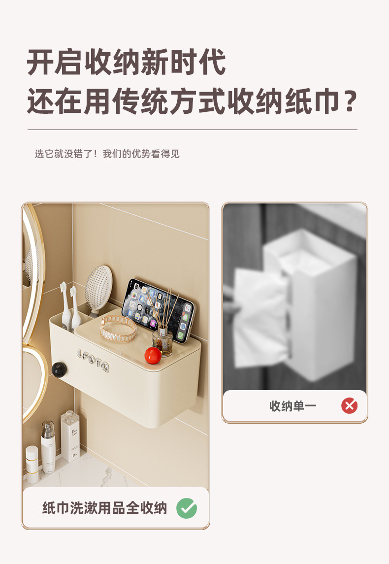 纸巾盒卫生间洗脸巾收纳盒壁挂式厕纸防水抽纸盒厨房卫生纸置物架