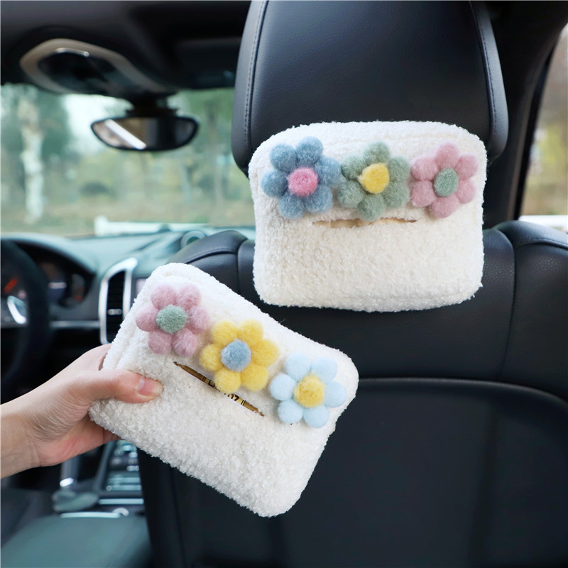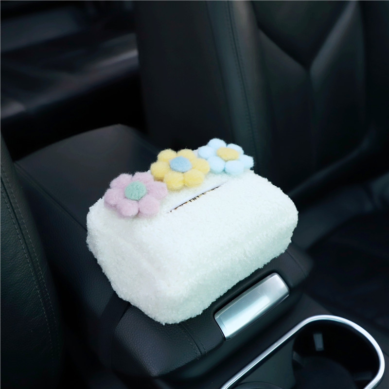 羊羔绒汽车纸巾盒 可爱花朵车用椅背扶手箱抽纸盒 创意车载纸巾盒