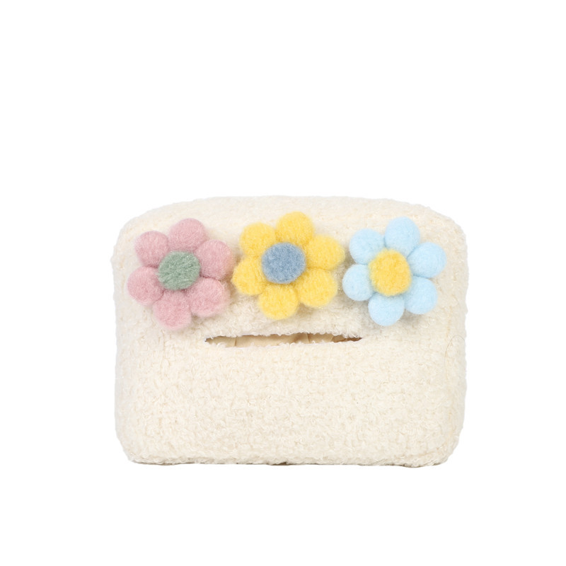 泫雅花蓝绿粉羊羔绒纸巾盒