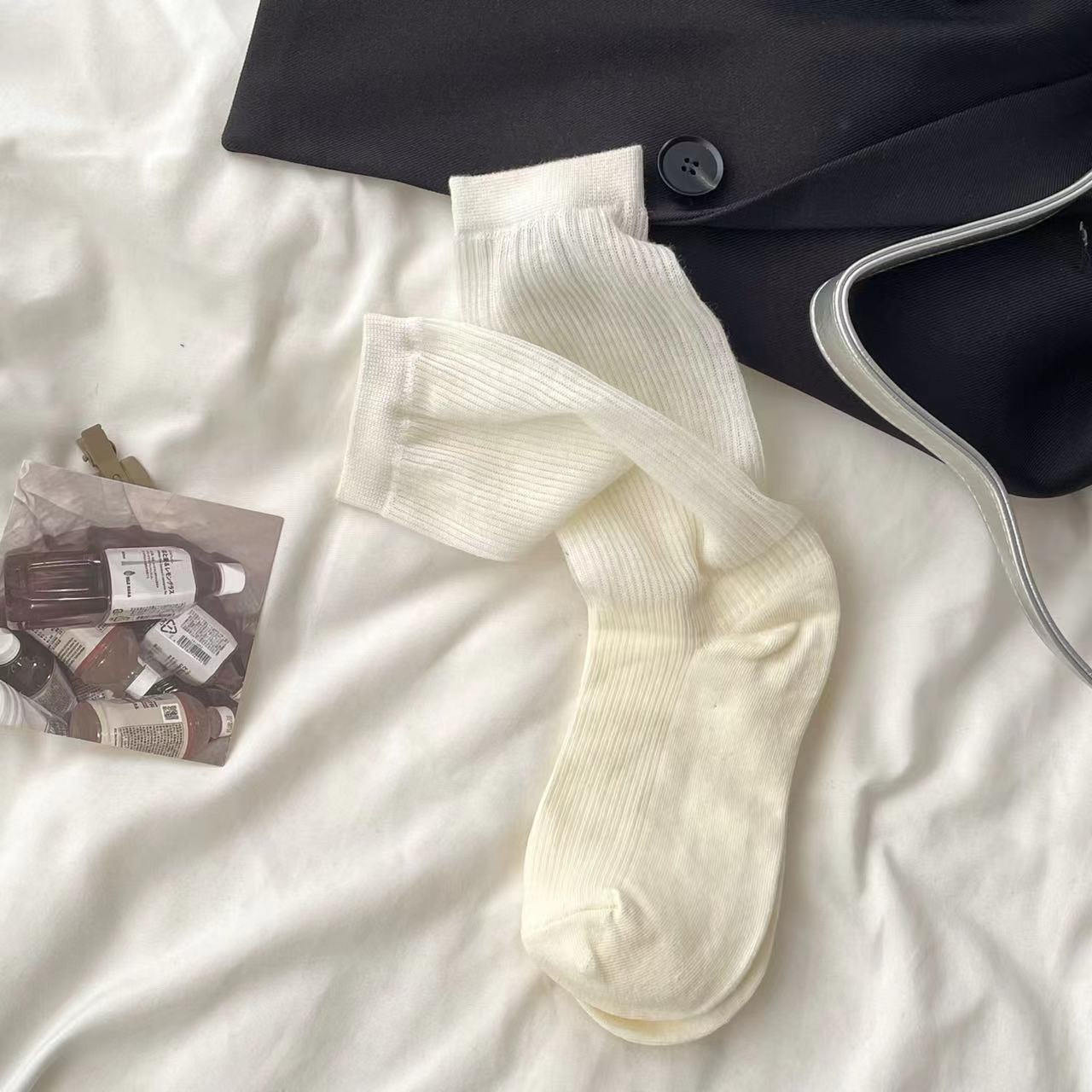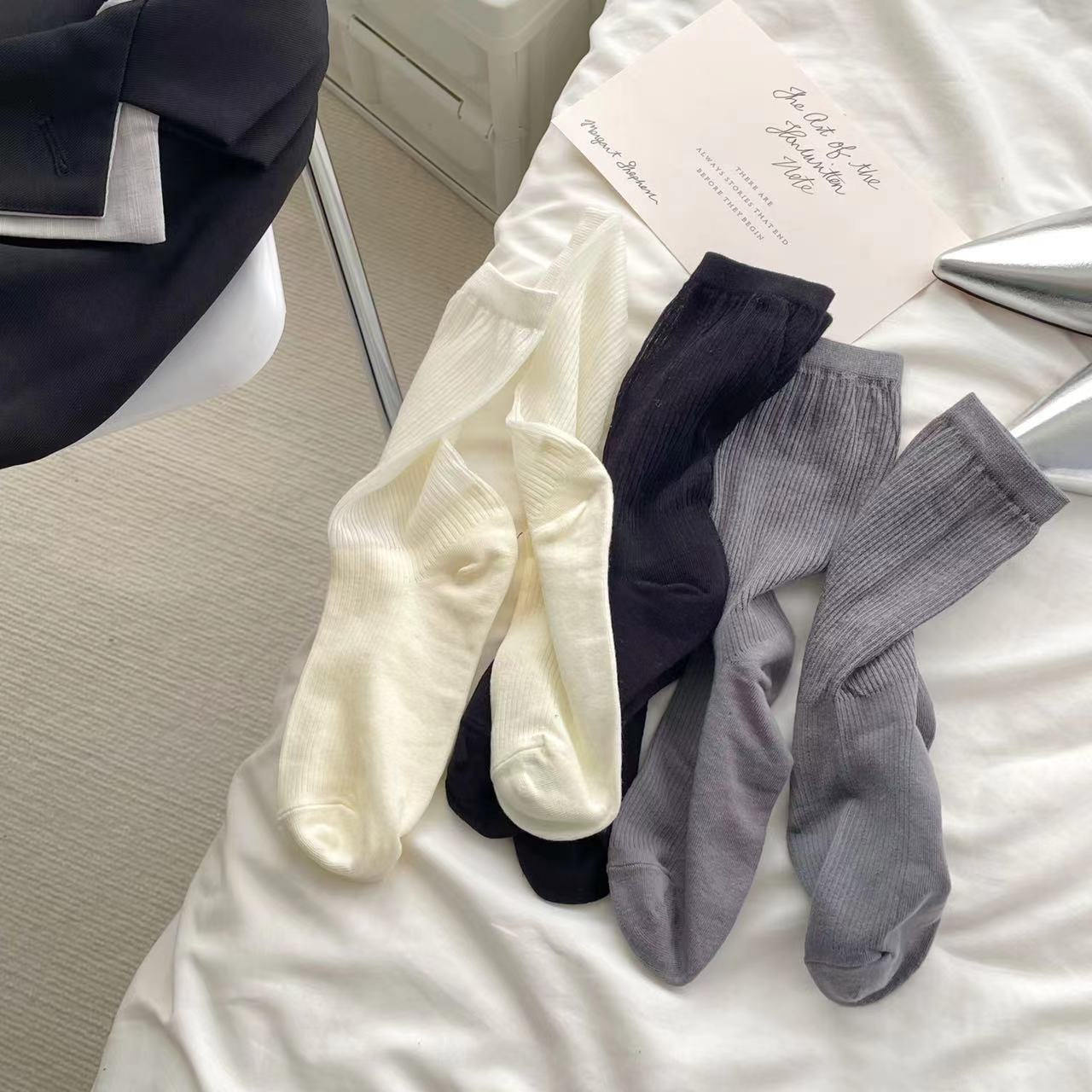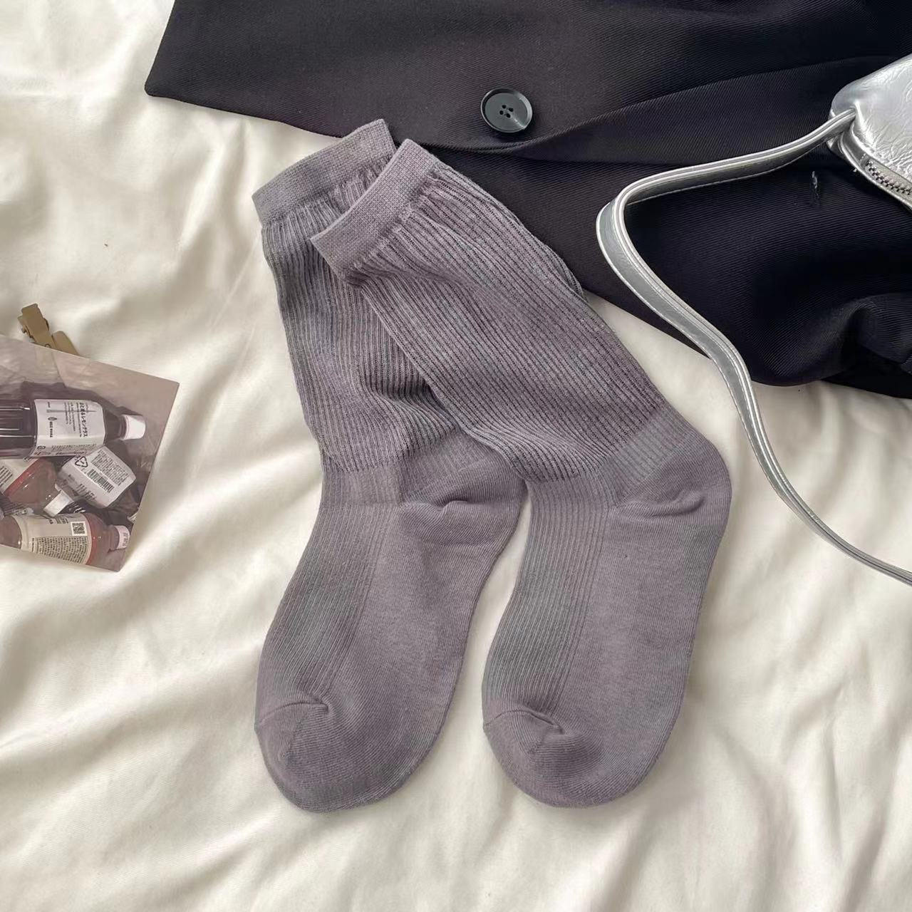 袜子女夏季薄款纯色中筒袜ins韩系慵懒透气竖条简约百搭堆堆袜棉