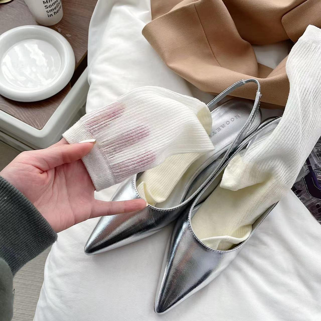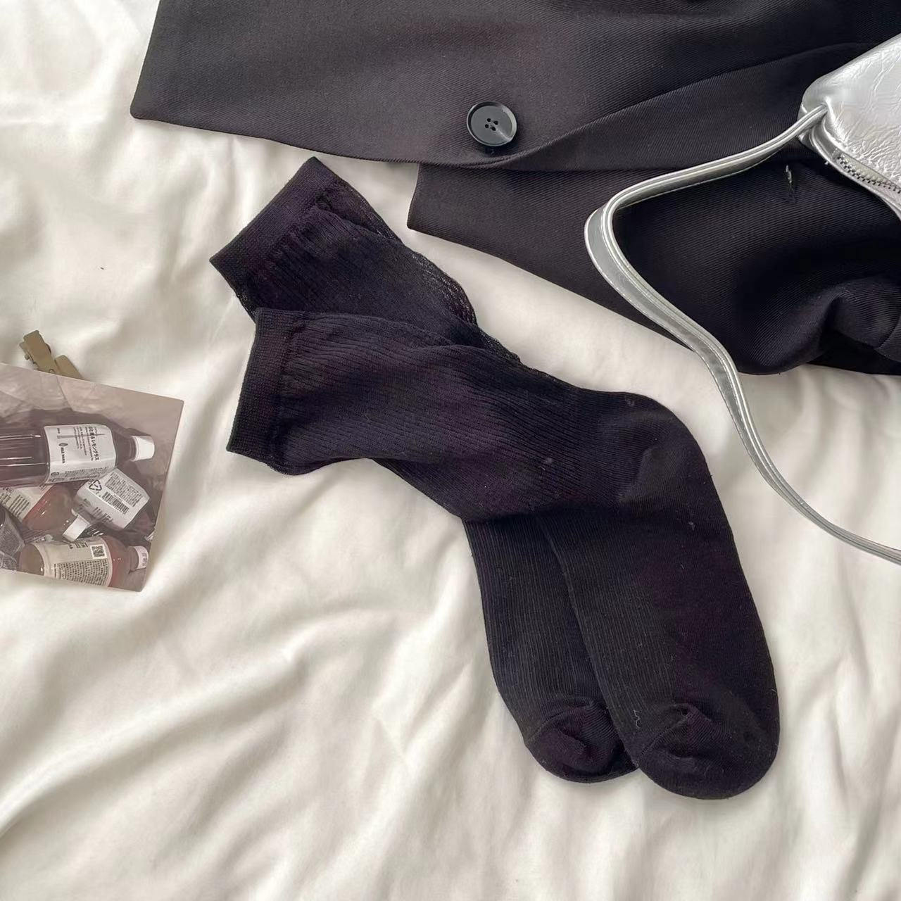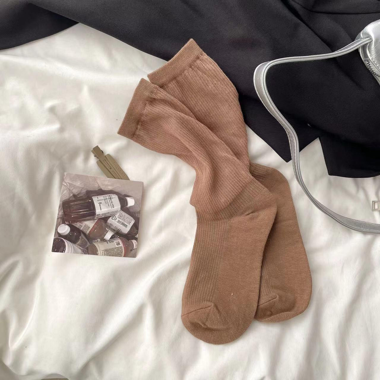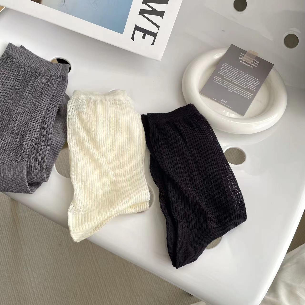 袜子女夏季薄款纯色中筒袜ins韩系慵懒透气竖条简约百搭堆堆袜棉
