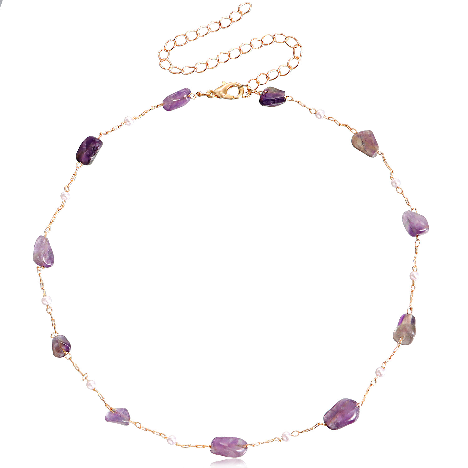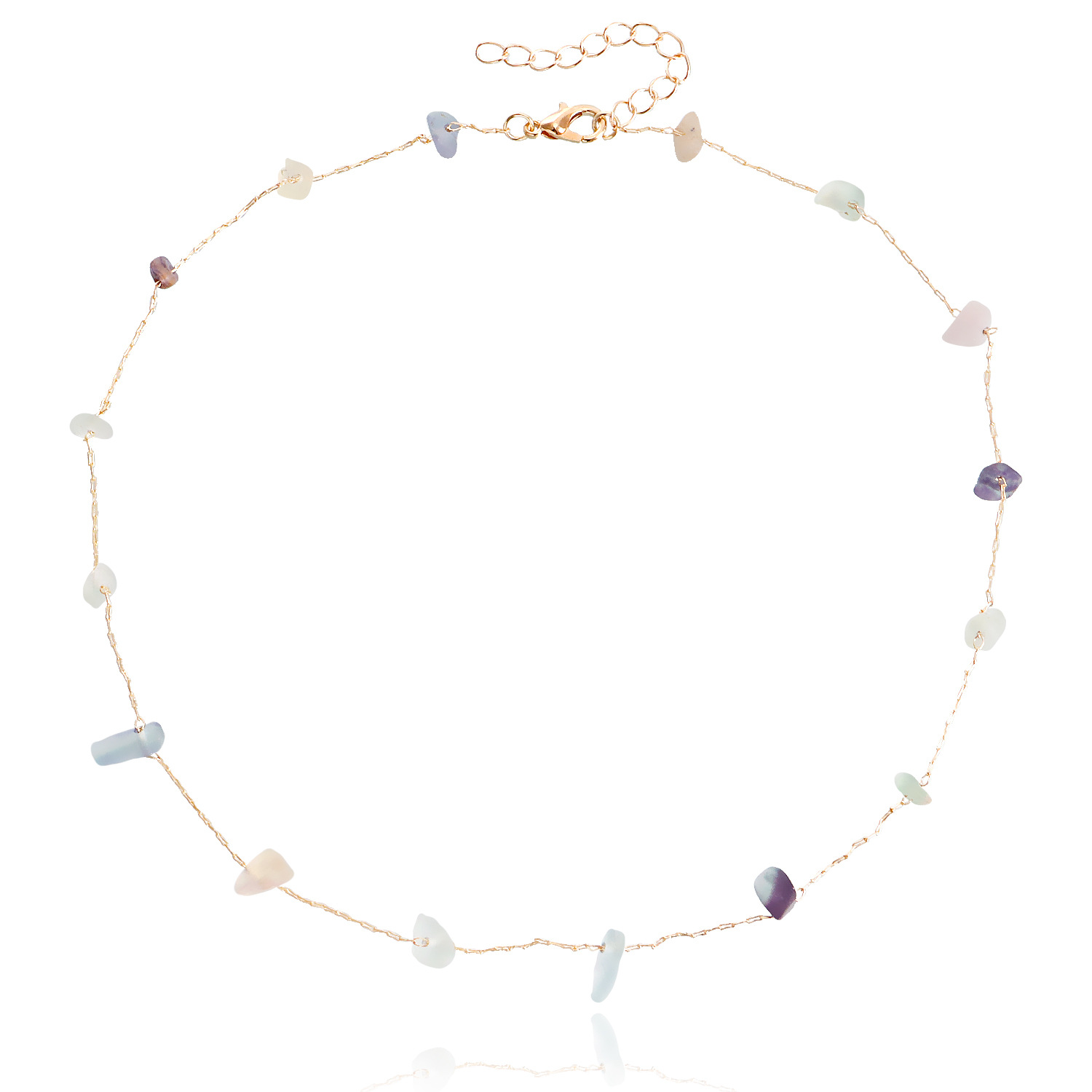 欧美跨境饰品 ins沙滩彩色天然不规则碎石颈链项饰女 锁骨链