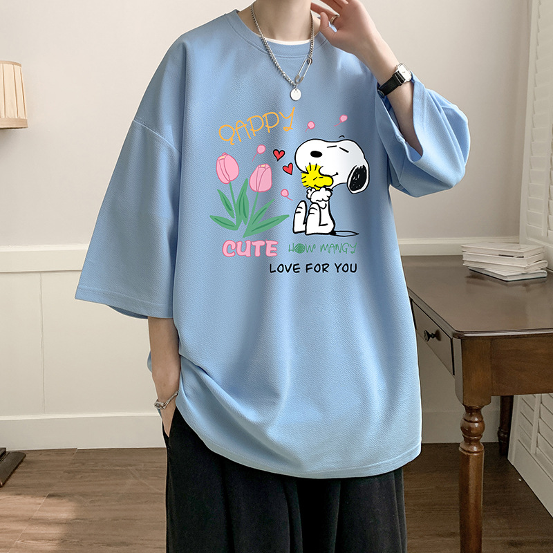 新款五分袖潮流纯短袖t恤男宽松印花生夏季潮牌棉半袖