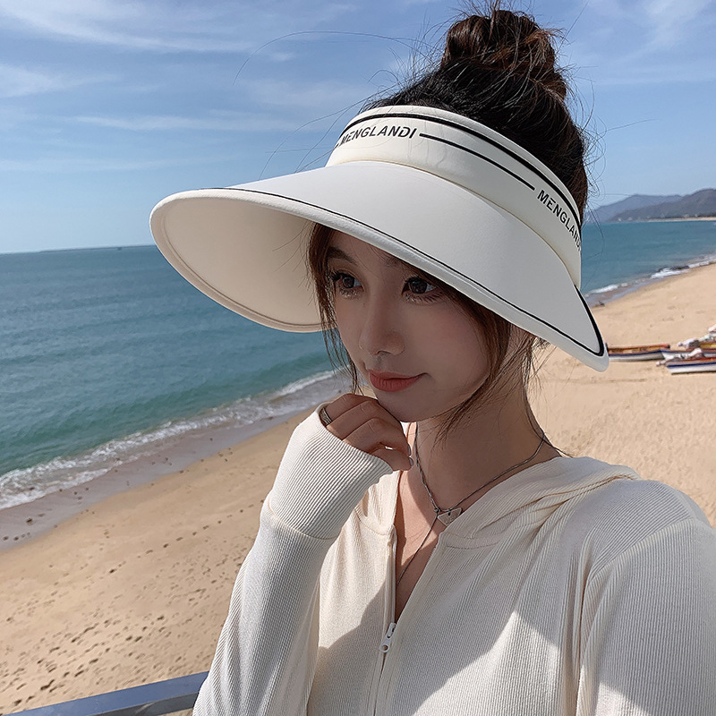 UV大檐防晒帽女夏季户外骑车防紫外线空顶帽子夏天沙滩遮脸太阳帽