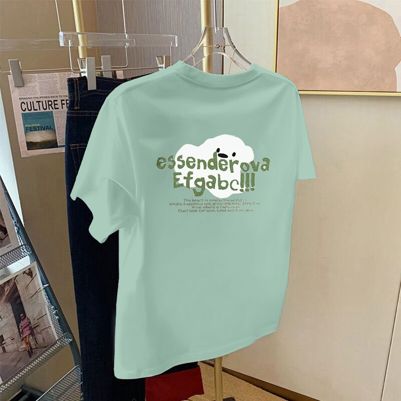 绿色短袖t恤女宽松百搭2025夏季新款设计感字母印花小众洋气上衣