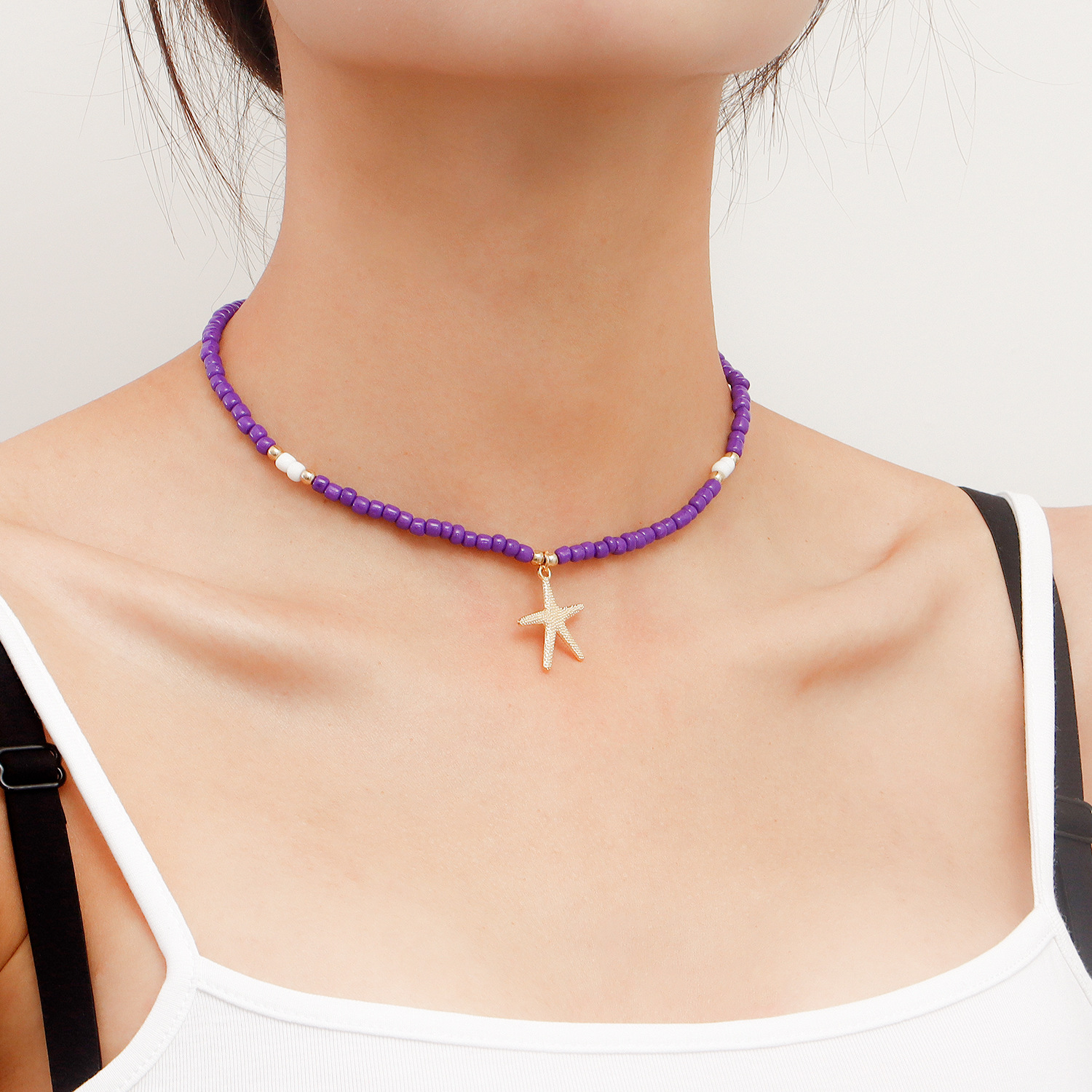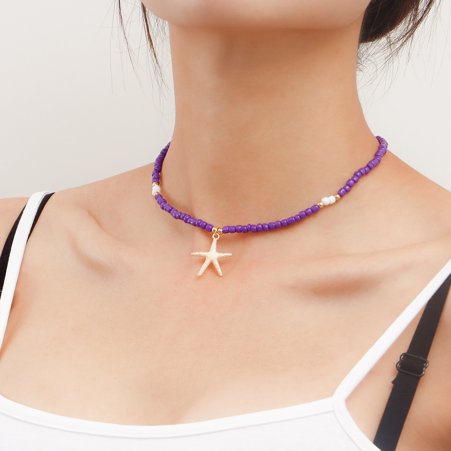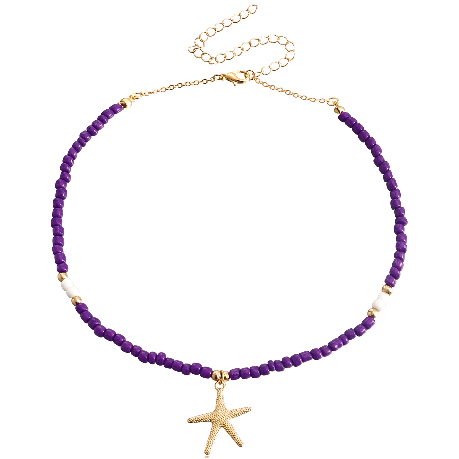 欧美跨境饰品 波西米亚彩色大号米珠颈链项饰女 沙滩海星串珠项链