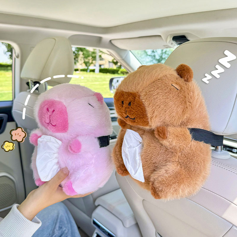 卡皮巴拉车载纸巾盒可爱毛绒汽车扶手箱创意抽纸盒多功能挂式纸巾