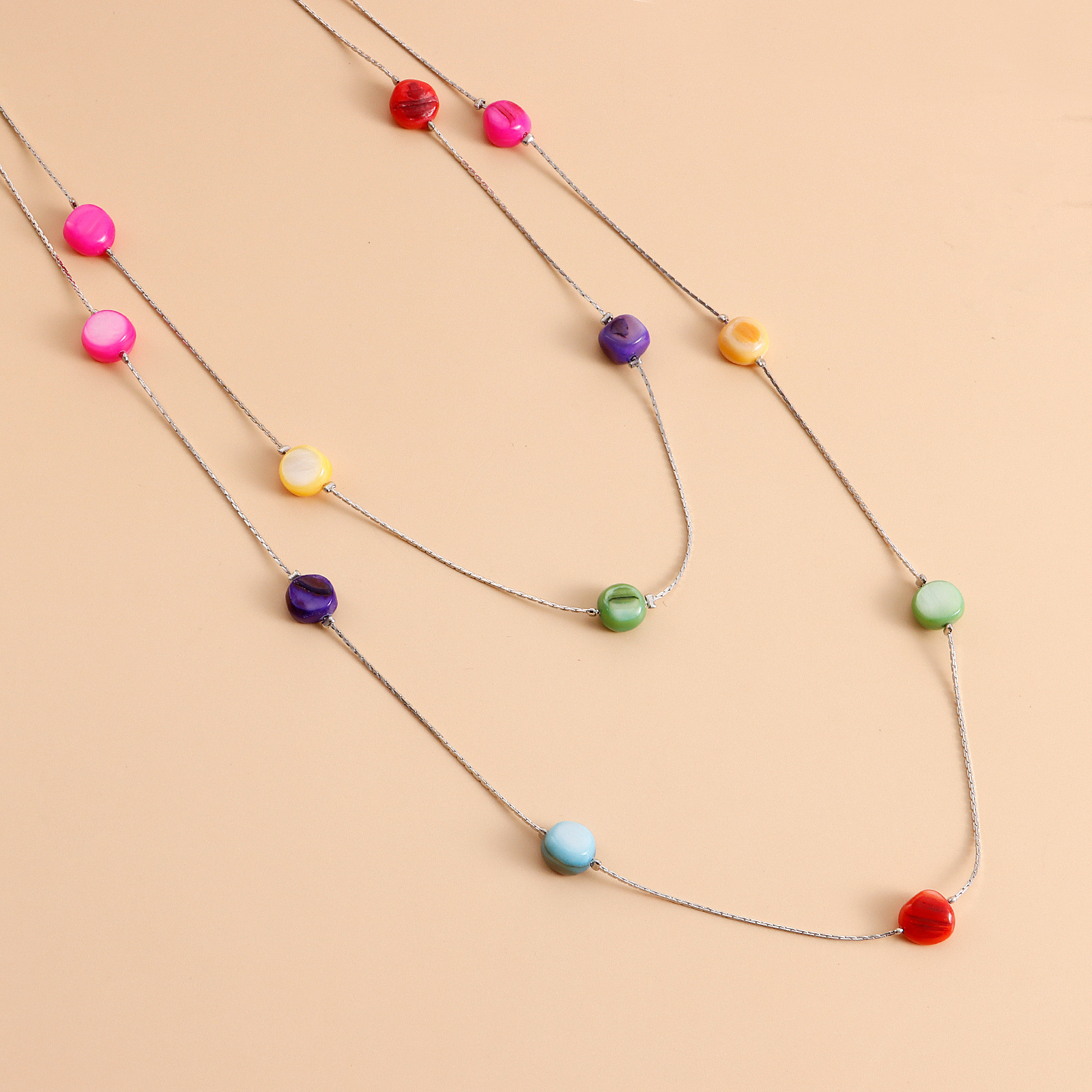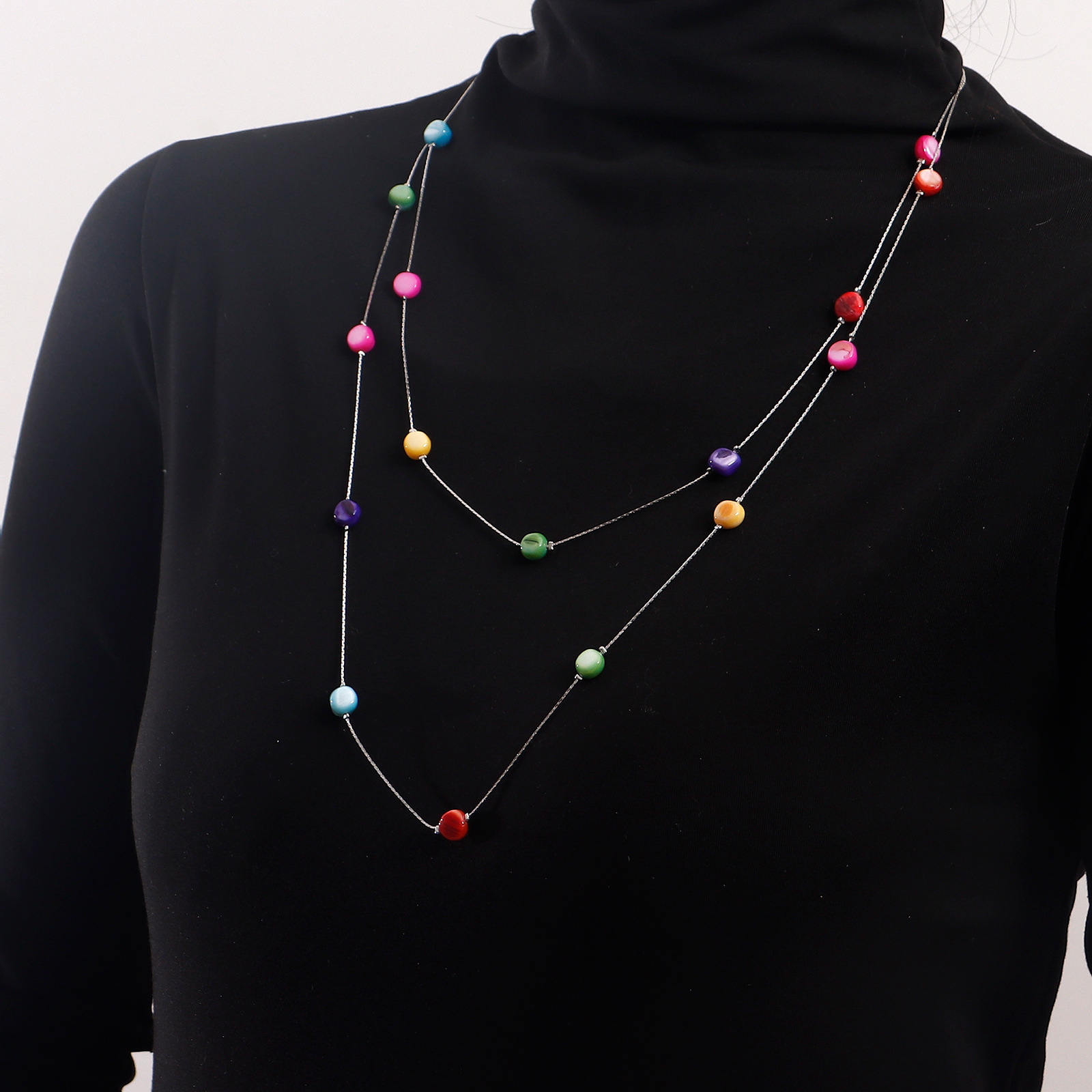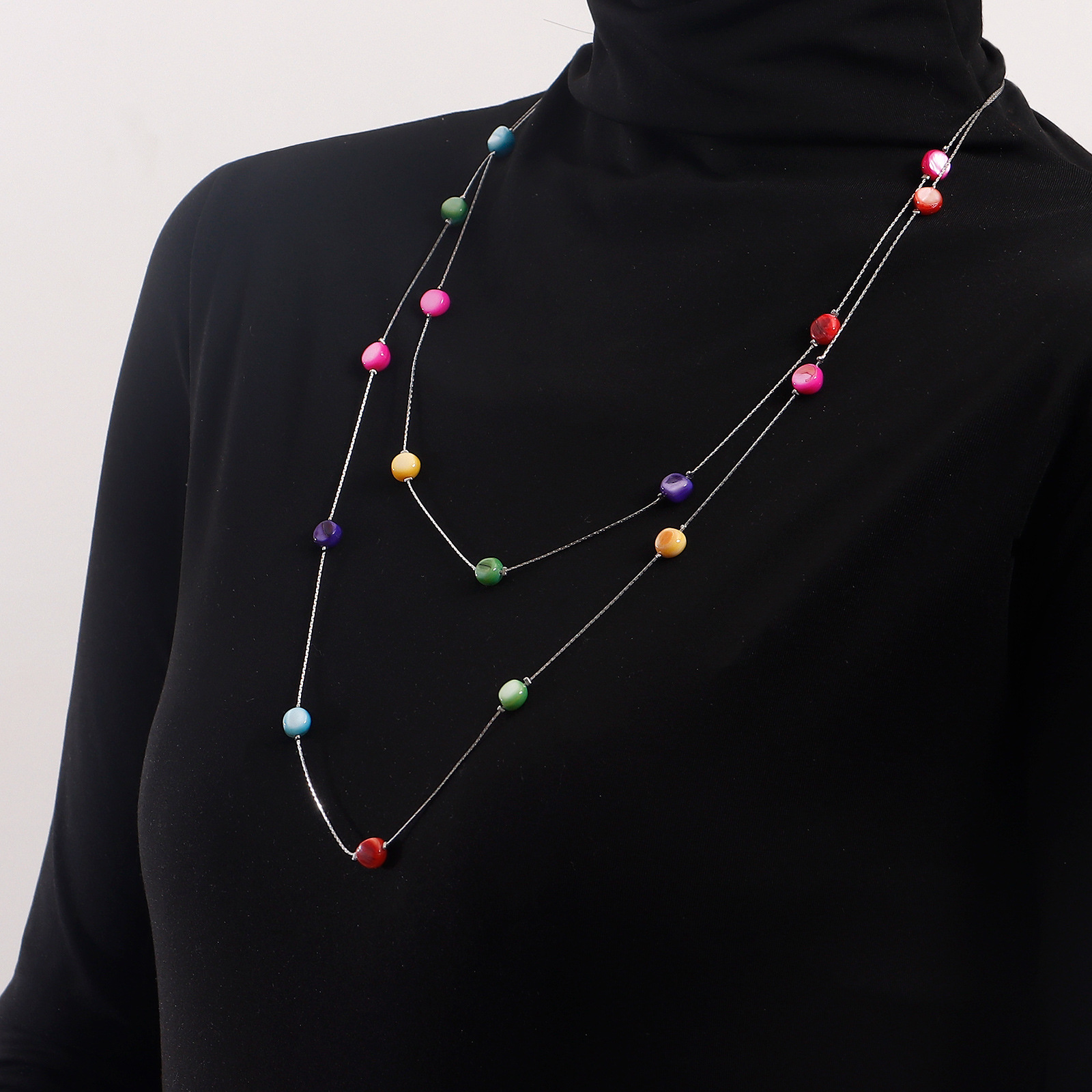 欧美跨境饰品 长款双层流苏彩色锆石项链女 毛衣链ins金属风项饰