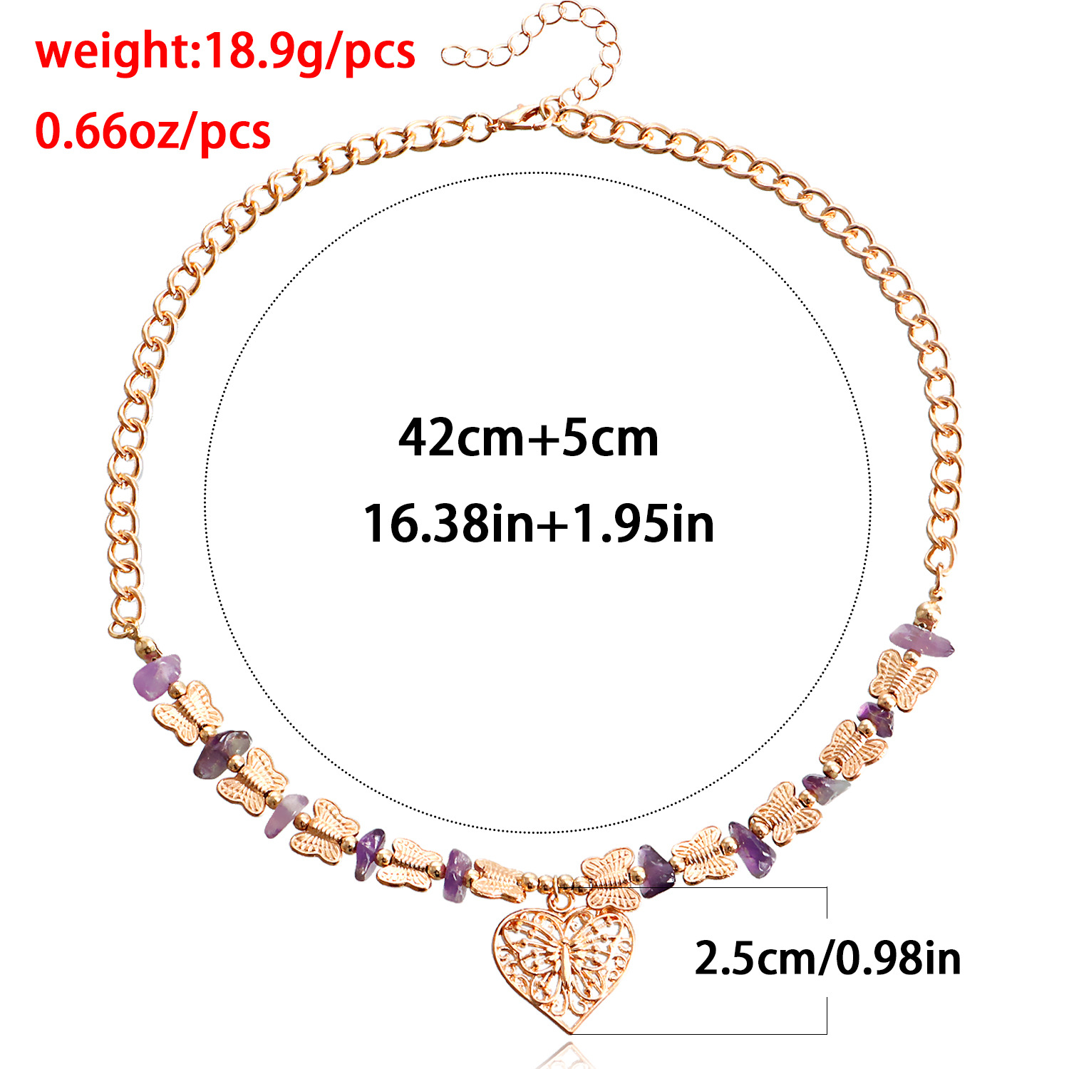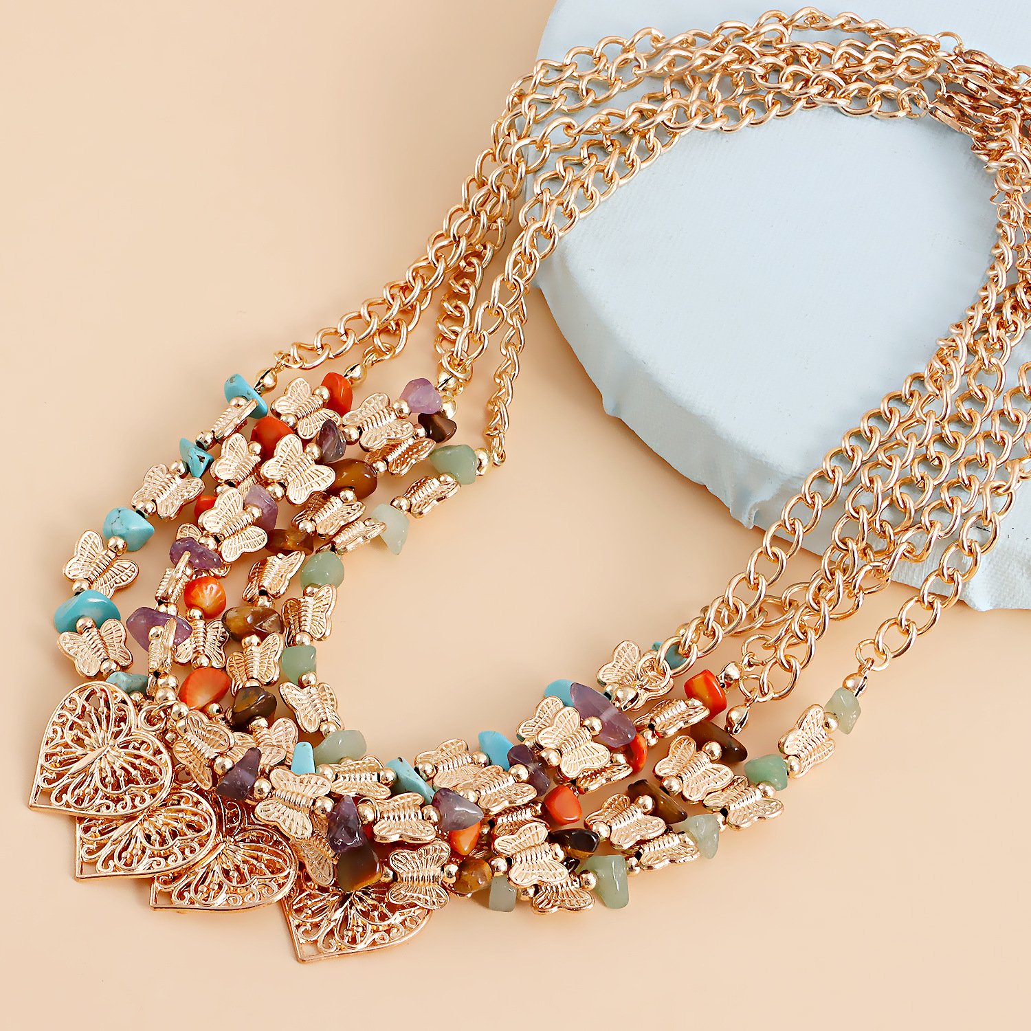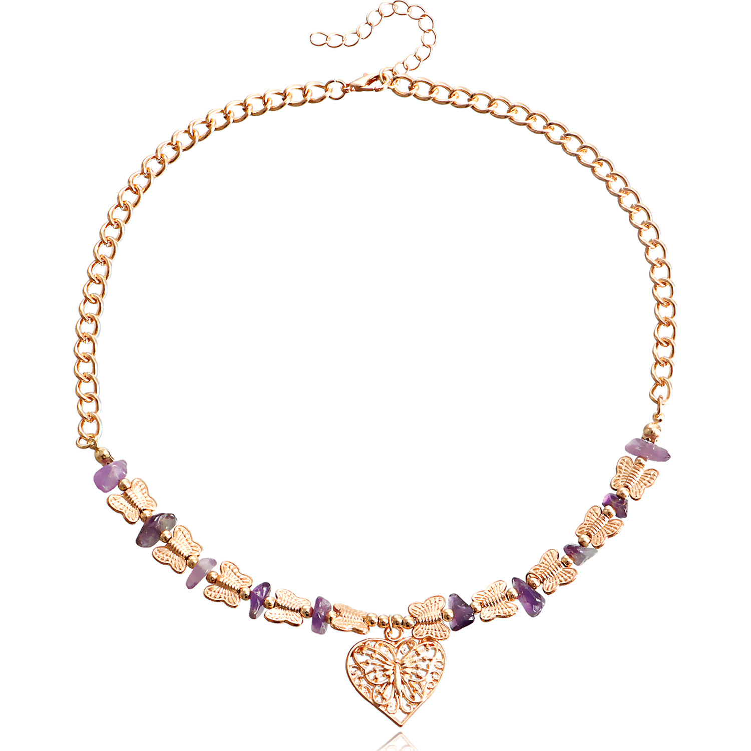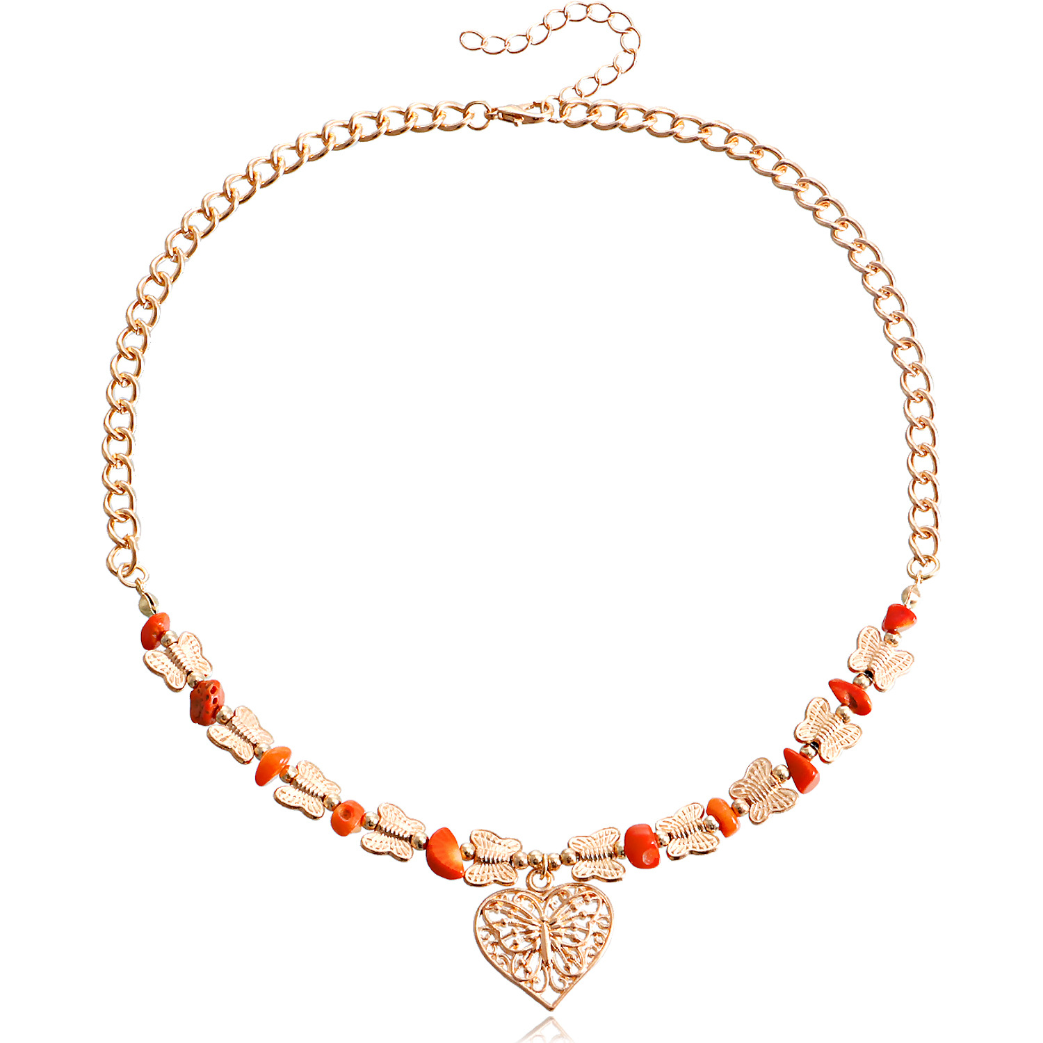 欧美跨境饰品 热销天然石蝴蝶拼接碎石锁骨链项饰 复古爱心项链女