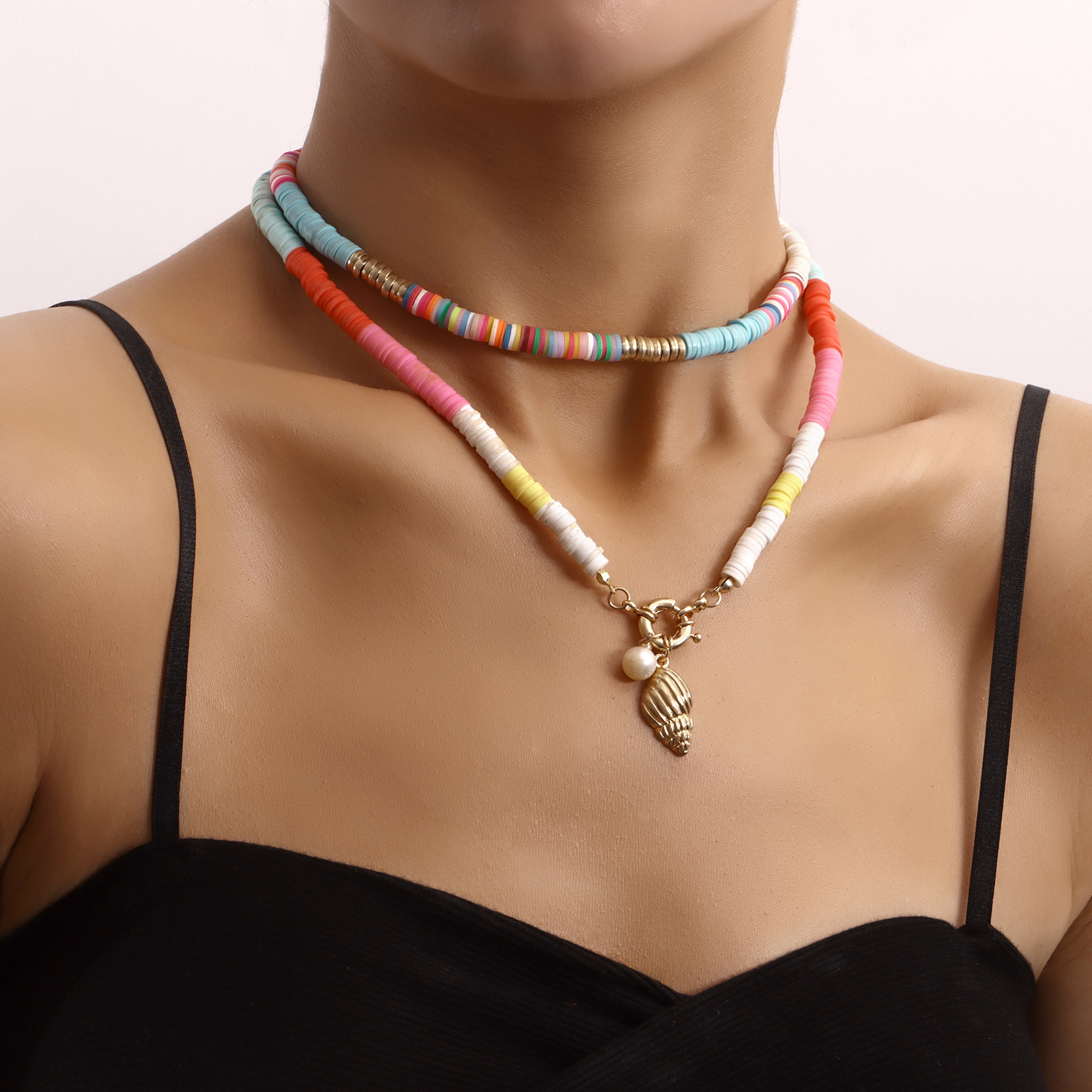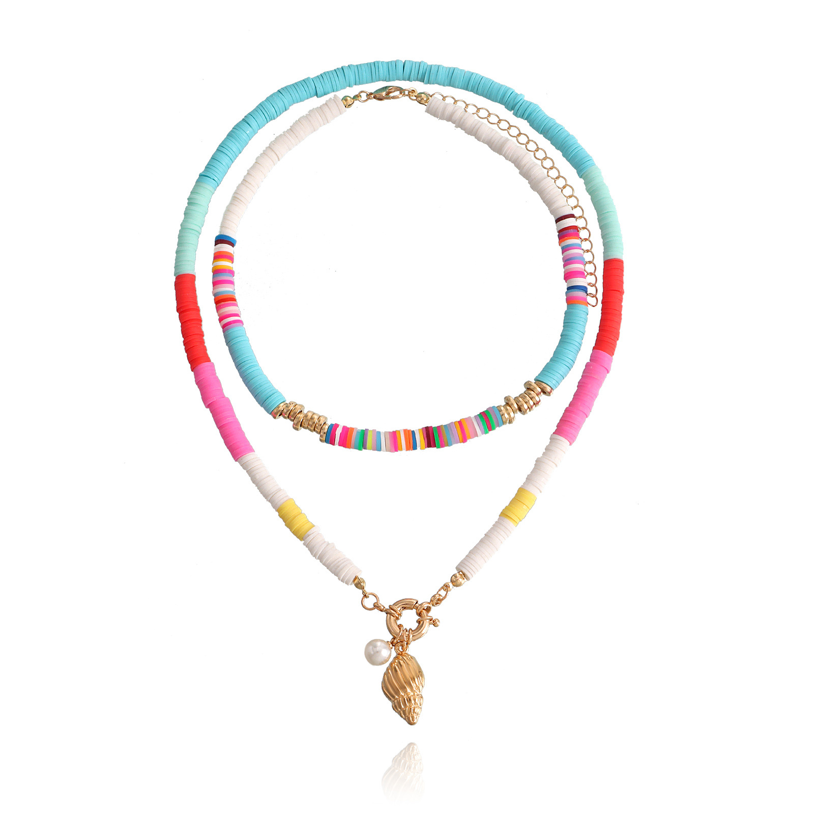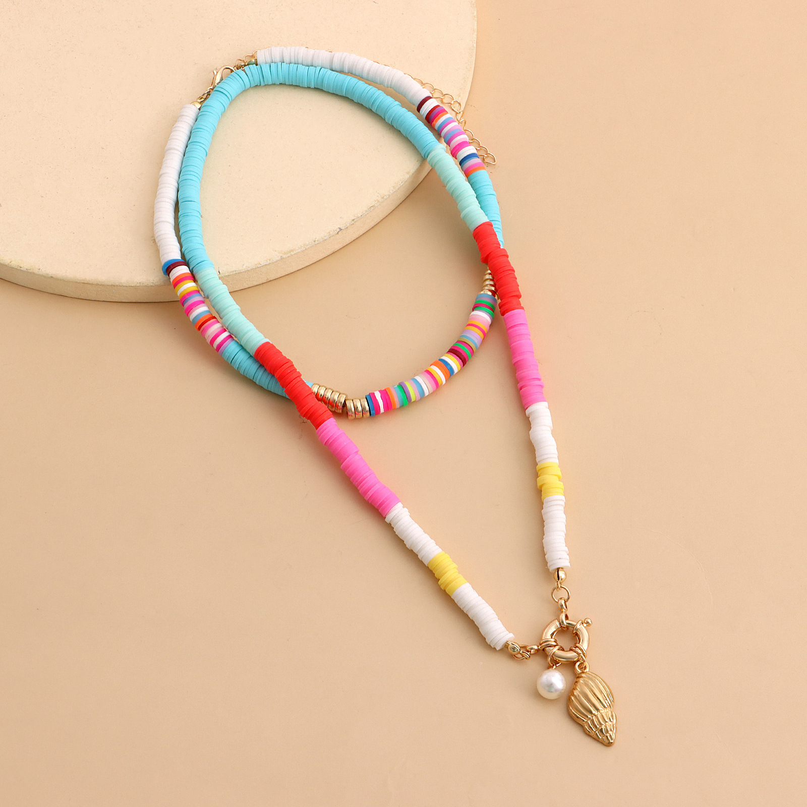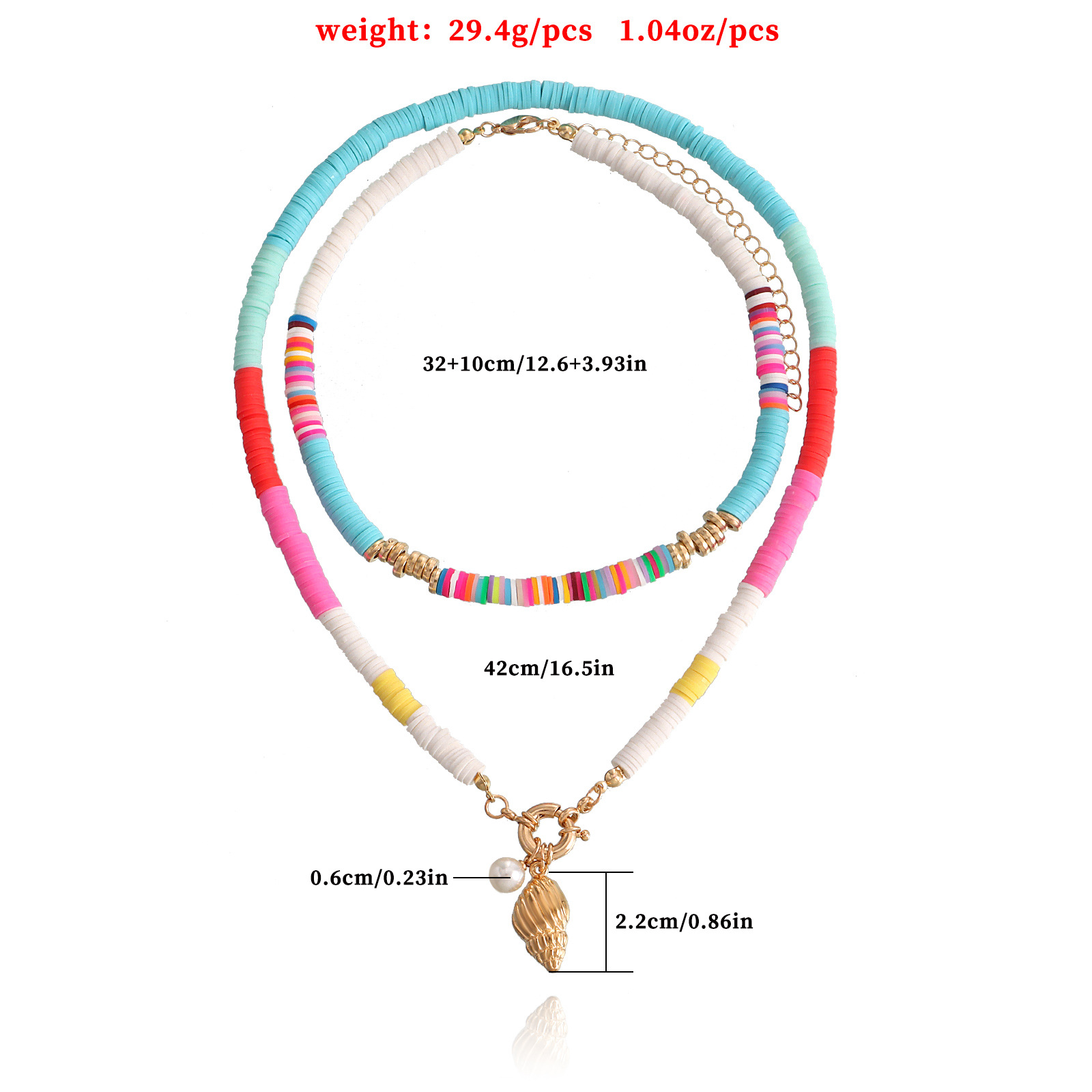 欧美跨境饰品 双层彩色软陶片珍珠扇贝吊坠项链女 海洋系潮款项饰